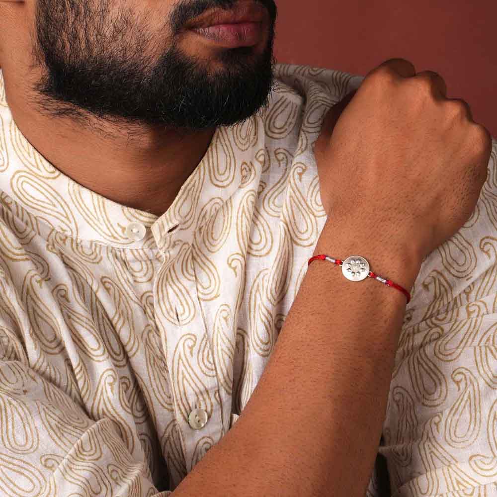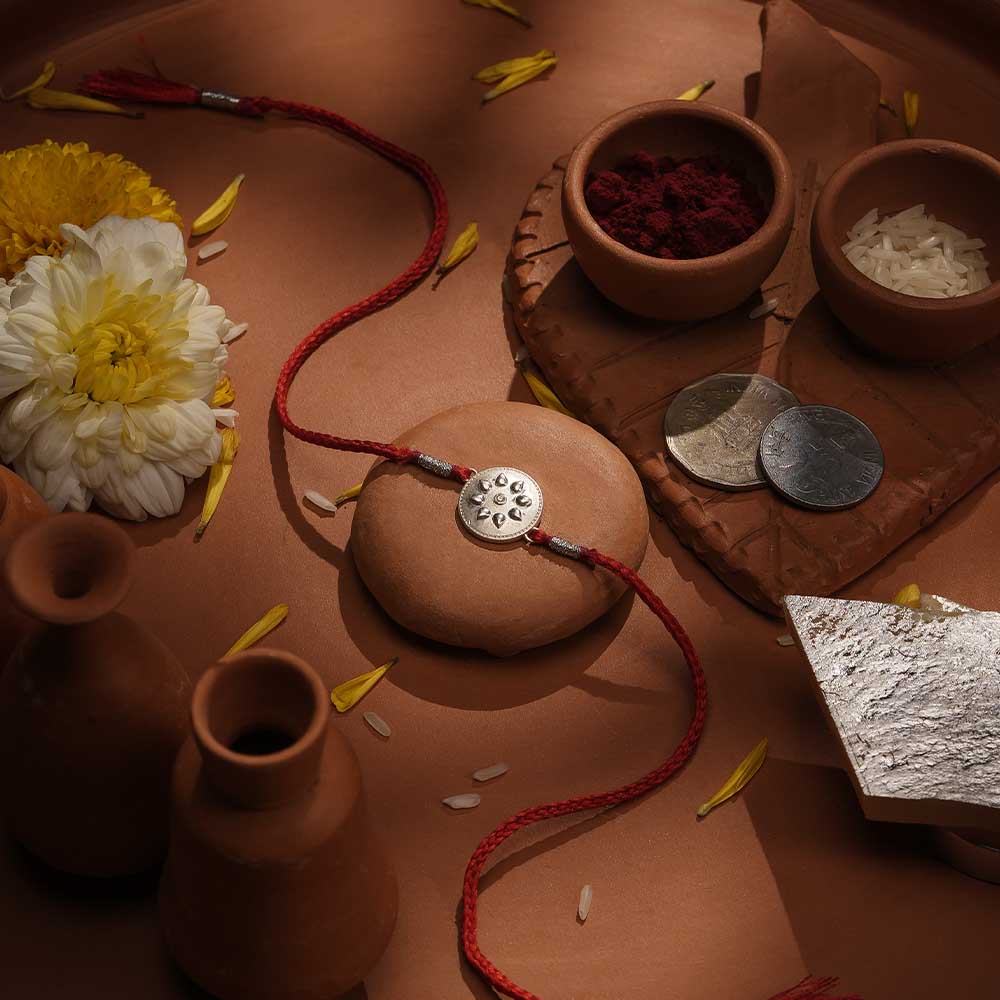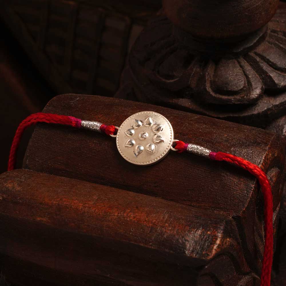 Celebrate the sacred bond of Raksha Bandhan with the Circle of Blessings Rakhi, crafted from premium 999 silver and featuring a 0.01 carat lab-grown diamond. This exquisite coin design captures the serene lunar phases, symbolizing transformation, tranquility, and the enduring inner light within. The use of lab-grown diamond ensures ethical sourcing without compromising brilliance, while the high-purity silver offers lasting durability and a refined finish. Perfect for those who appreciate meaningful symbolism combined with expert craftsmanship, this Rakhi is a timeless token of protection and love.