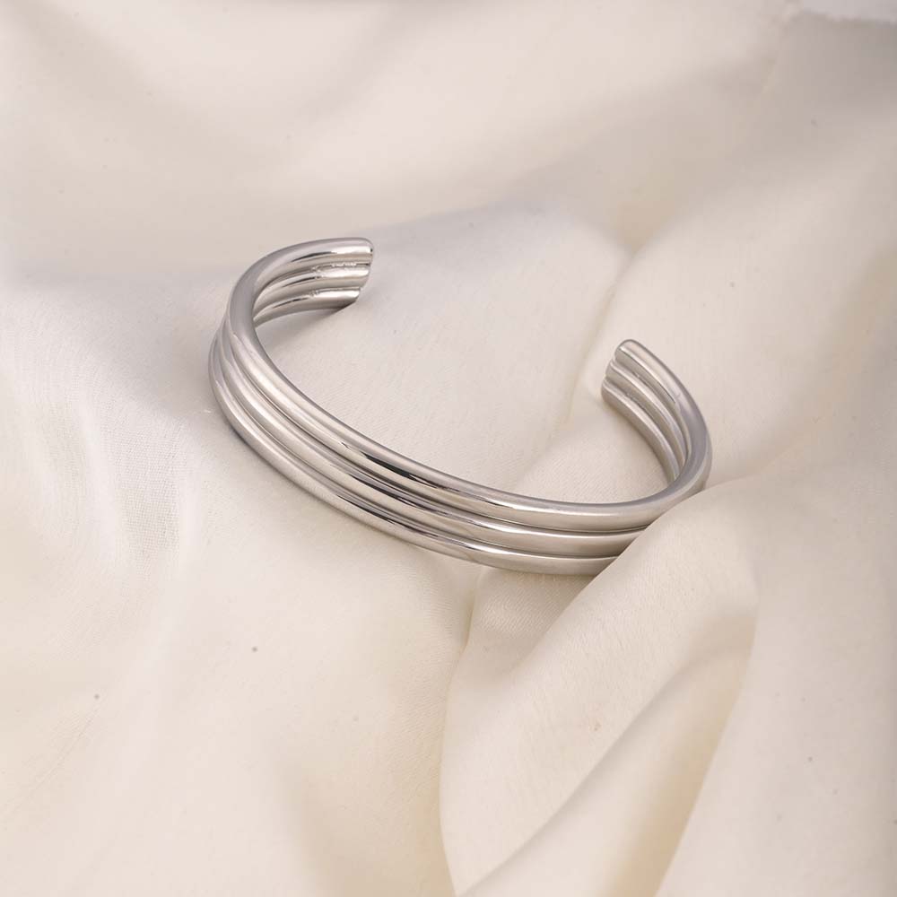 Crafted from shimmering stainless steel, this bracelet captures the essence of a cascading stream. Delicate curves ripple around your wrist, catching the light and sparkling like sunlight dappling on water. The smooth, polished finish adds a touch of elegance, while the continuous flow of the design creates a sense of movement and serenity.