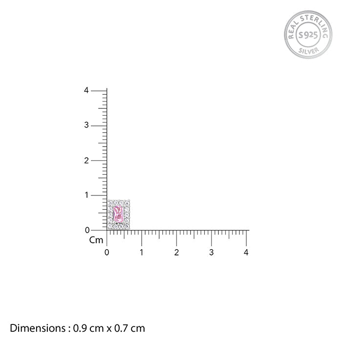 These silver earrings boast a rectangular design with zircon accents and a central coloured stone.