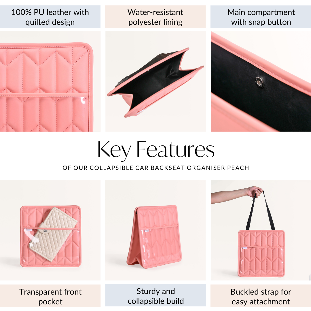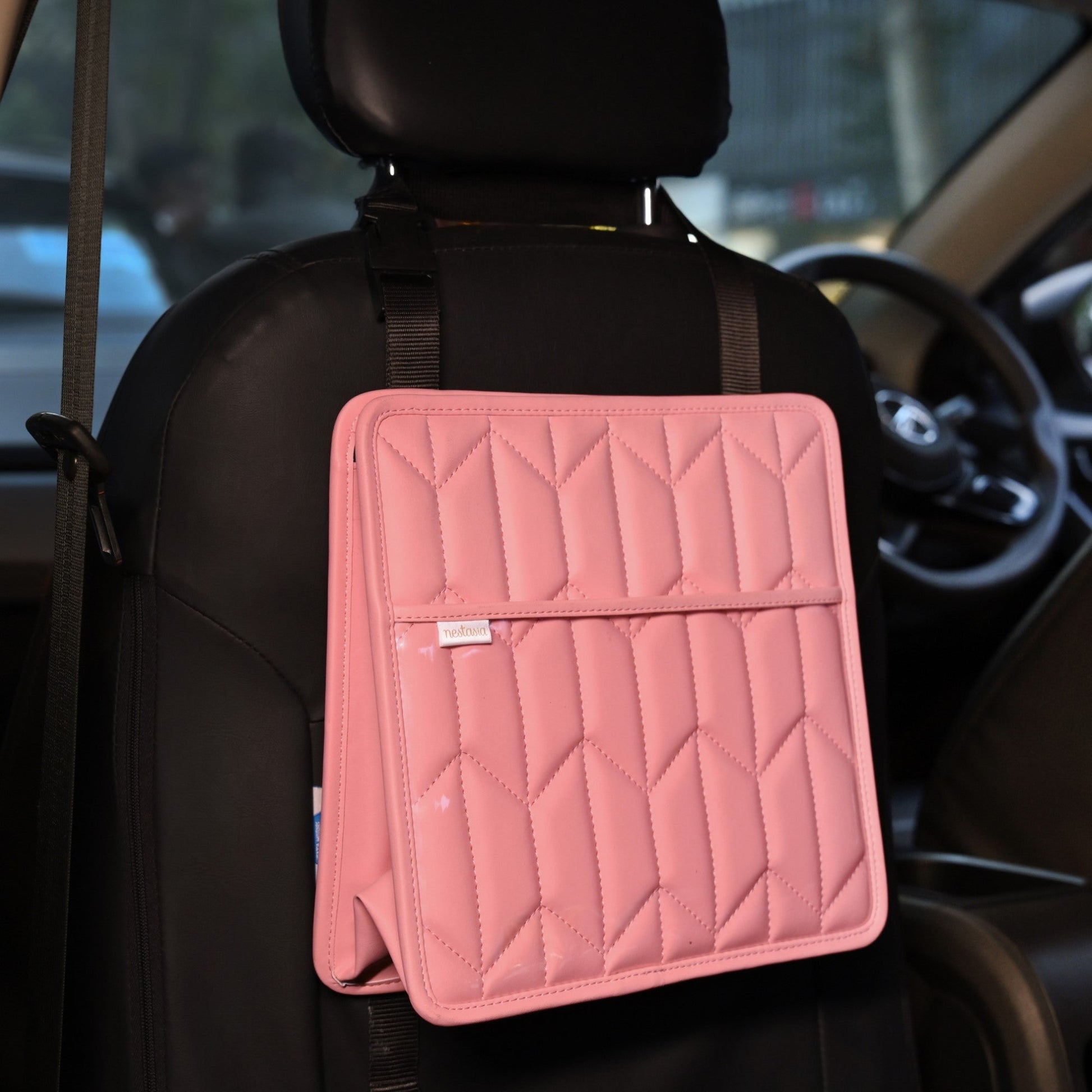 Keep your car interior tidy and stylish with this sleek backseat organiser in a soft peach hue. Designed for both practicality and elegance, it helps manage clutter while enhancing the look of your vehicle.