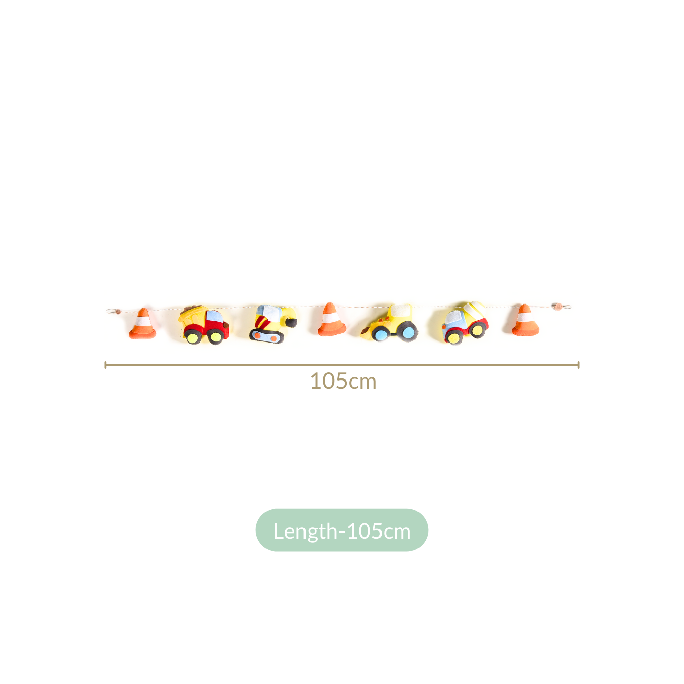 Benefits: It is a versatile addition to your baby products collection, with easy hanging options for crib decor, bassinet, baby stroller, or even toddler beds. Its durable, well-stitched design makes it easy to maintain, while the vibrant colours and playful details help stimulate your baby’s motor skills through visual tracking and engagement. It's safe for babies, thanks to the hypoallergenic felt fabric. As a unique decor accent, it adds character to your little one's space, creating a fun, builder-inspired atmosphere wherever you place it!