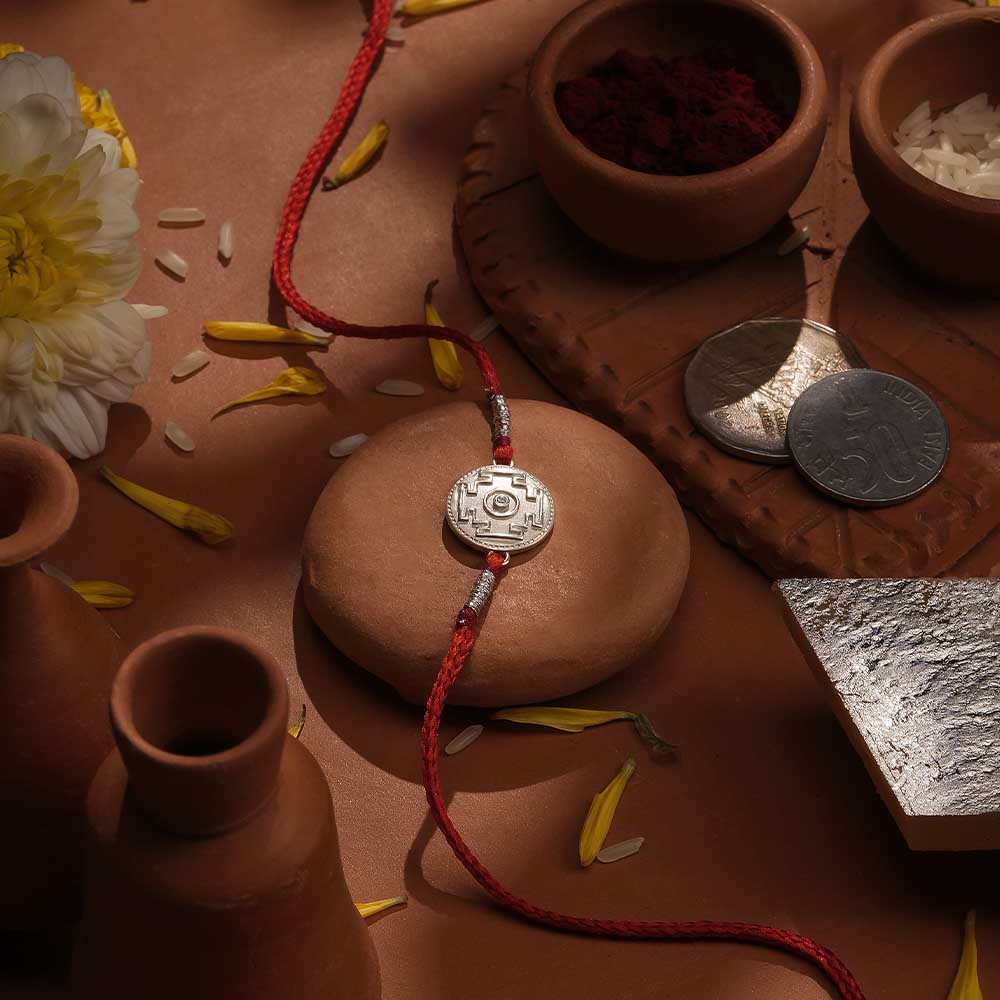 Inspired by the celestial beauty of the cosmos, this Rakhi features a 0.01 carat lab-grown diamond set on a 999 silver coin, symbolizing cosmic balance and enduring connections. Crafted with precision, the lab-grown diamond offers ethical brilliance and lasting sparkle, while the pure silver coin adds a touch of elegance and tradition. This Rakhi not only celebrates the timeless bond between siblings but also reflects a commitment to sustainability and modern craftsmanship, making it a meaningful and exquisite choice for your festive celebrations..