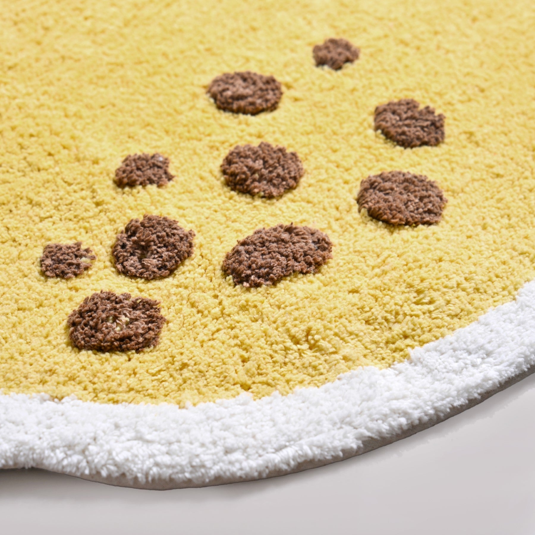 Design: Brighten your home with this plush lemon floor mat that combines cheerfulness and comfort. Its lemon shape and vibrant yellow body, accented with green leaves and brown seeds, bring a fresh, organic look to your living spaces. Whether placed beside your bed, in the bathroom, or by the kitchen sink, this citrusy mat adds a fun, fresh vibe to your décor. Lightweight, quick-drying, and crafted with care, it's a delightful upgrade from basic mats.