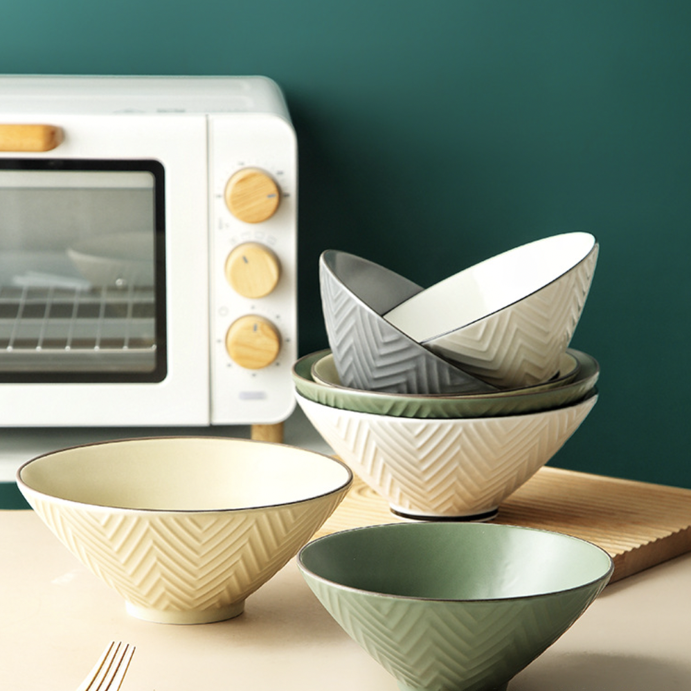 The beige ramen bowl is crafted in matt finish ceramic which lends a subtle and sophisticated aesthetic to the overall appeal. The creamy white bowl is a must-have for every crockery lover. The exterior of the bowl has a chevron patterned texture that exudes elegance and class. One can serve pastas, rice, ramen or other soupy noodles in this ceramic bowl.