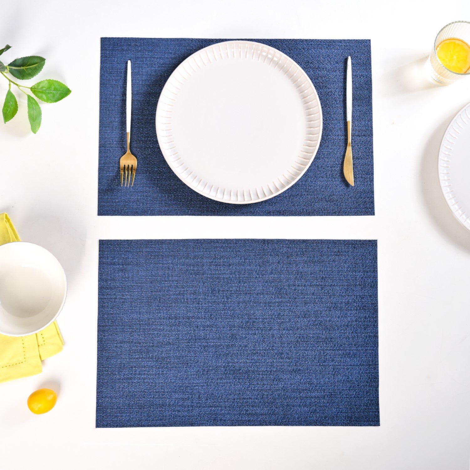 Add a sophisticated touch to your dining setup with these navy blue dining table mats, designed to deliver both functionality and style. These placemats protect your table while offering timeless elegance that effortlessly enhances any meal.