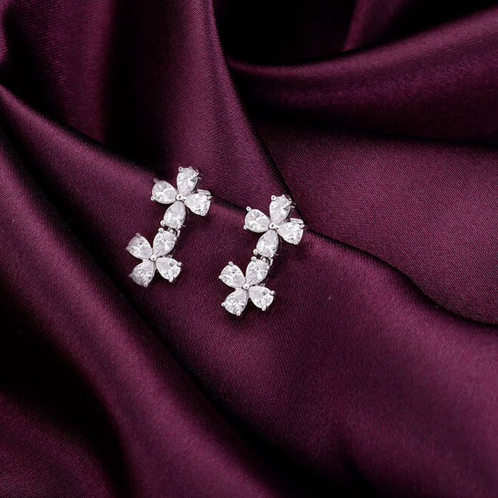 The silver earrings have the design that resembles bedstraw flower with four petals.
