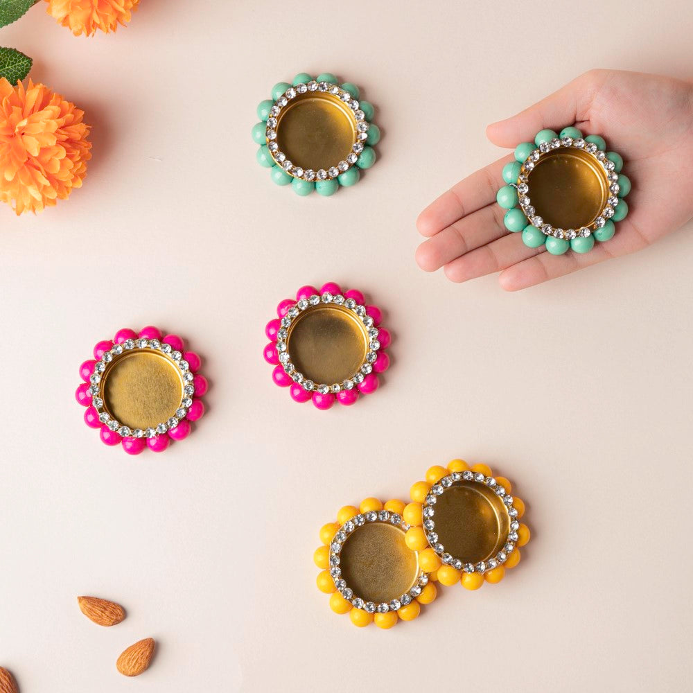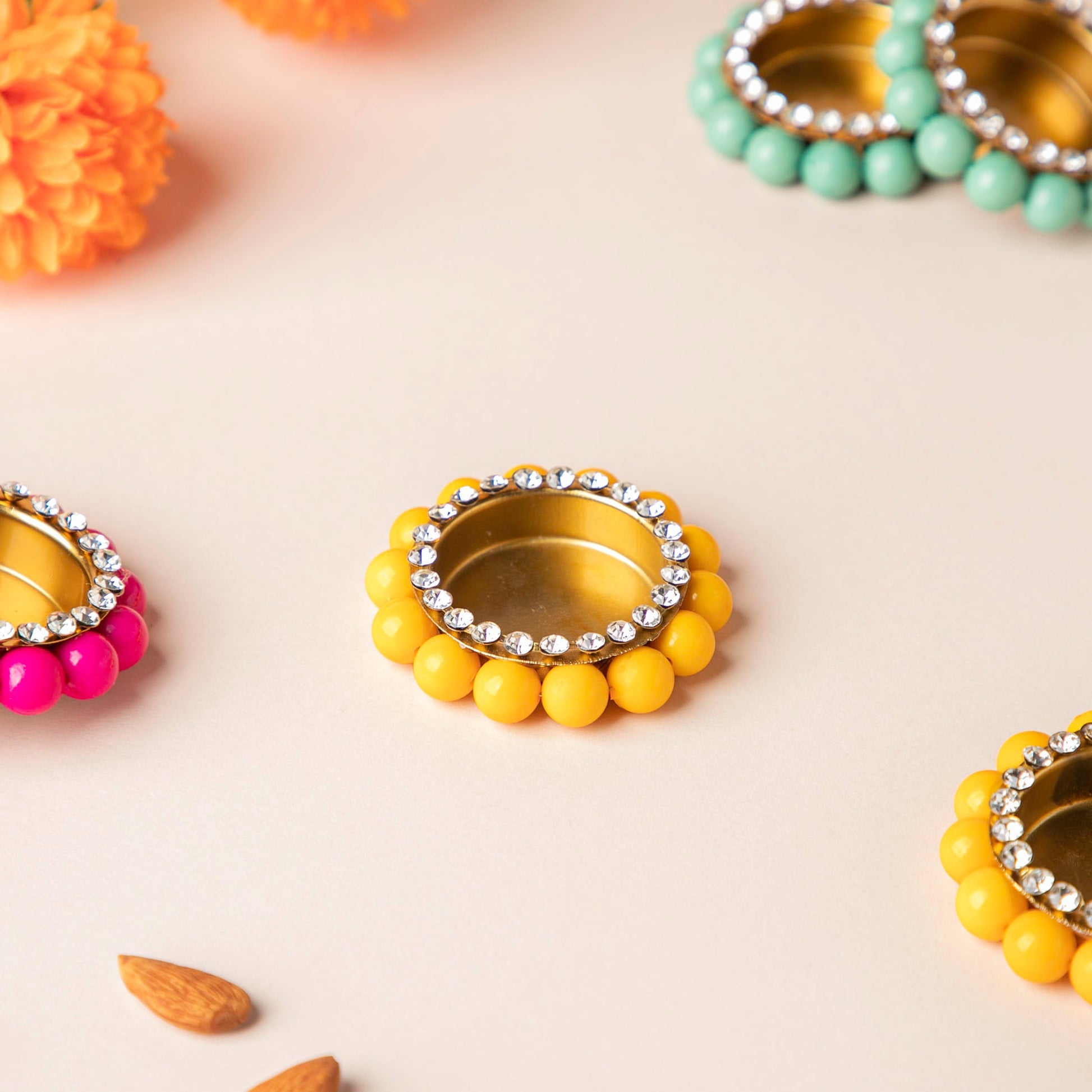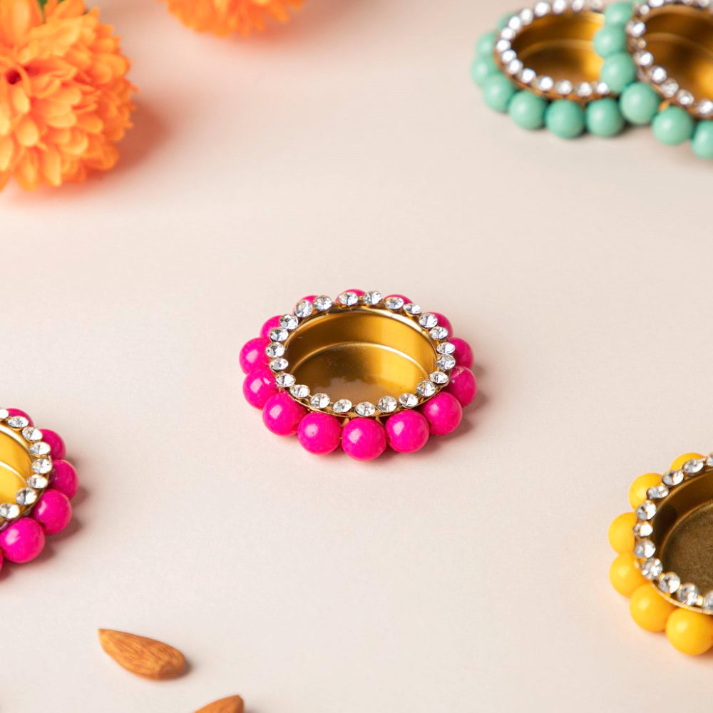 Diyas and tealight holders are the main elements of Diwali brilliance. When the house is fully decorated with gleaming diyas and tealights, the spirit of Diwali goes up a notch. So, here, Trendy Freak presents its assorted range of tealight holders in pink, yellow, and green which are designed with the purpose of bringing a token of joy and happiness to you. Gift sets are not returnable.