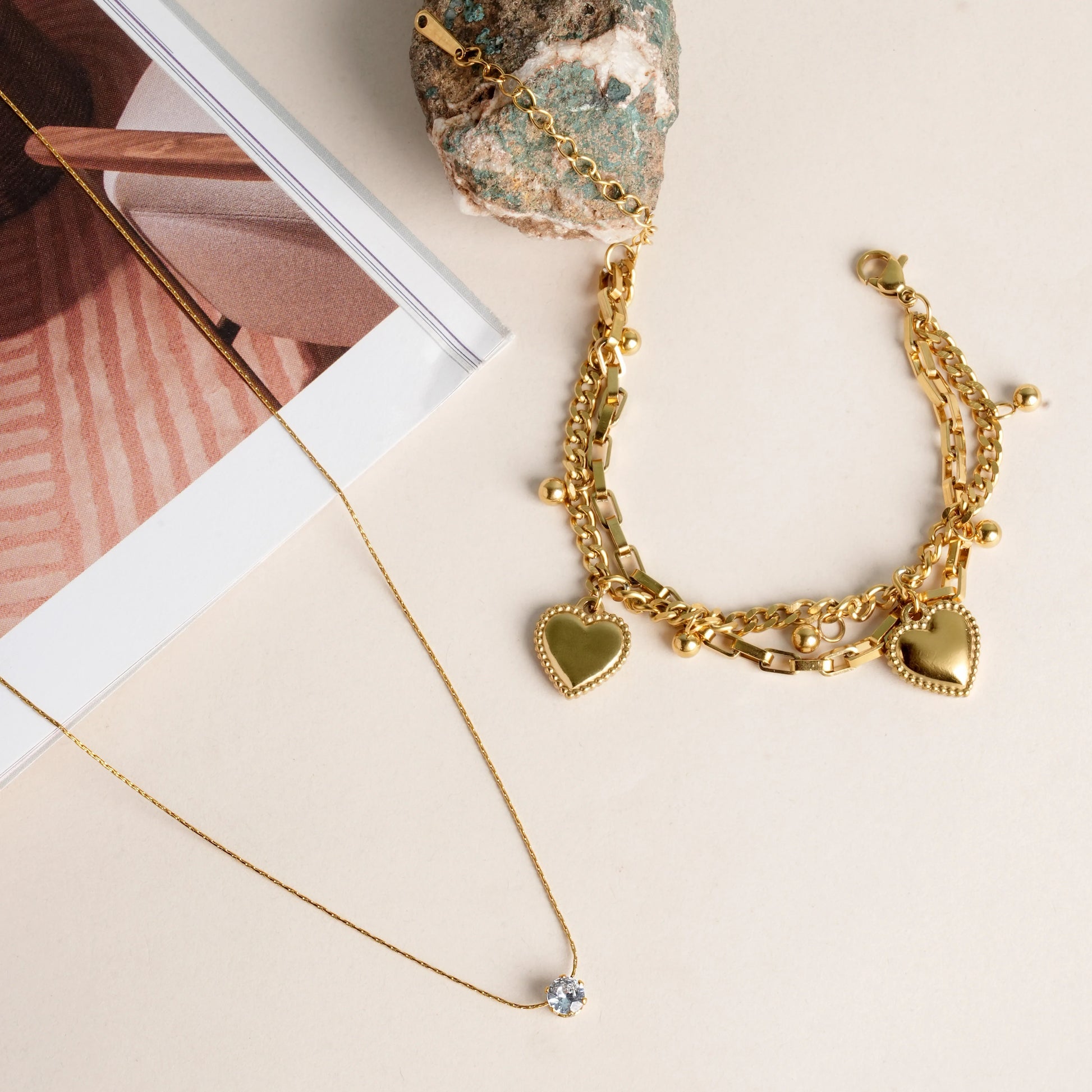 Delicate Diamond Studded Necklace & Hearts All Over Bracelet Jewellery Set