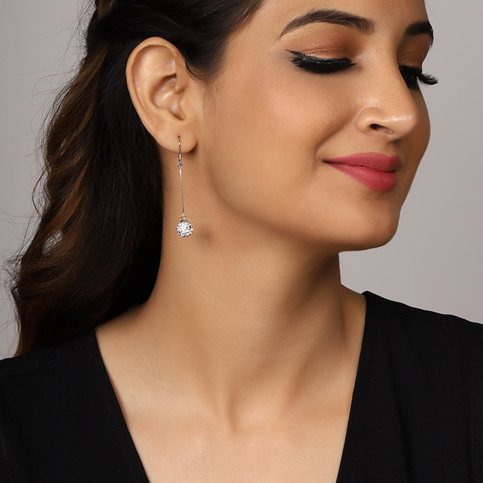 The Silver Queen of The Night Dangler Earrings have a studded ball design dangling through.
