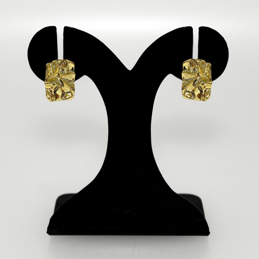 Embrace a modern edge with these gold metal drop earrings, expertly crafted from dented metal. The unique texture adds depth and character, while the sleek design ensures a bold yet refined look that's perfect for any occasion.