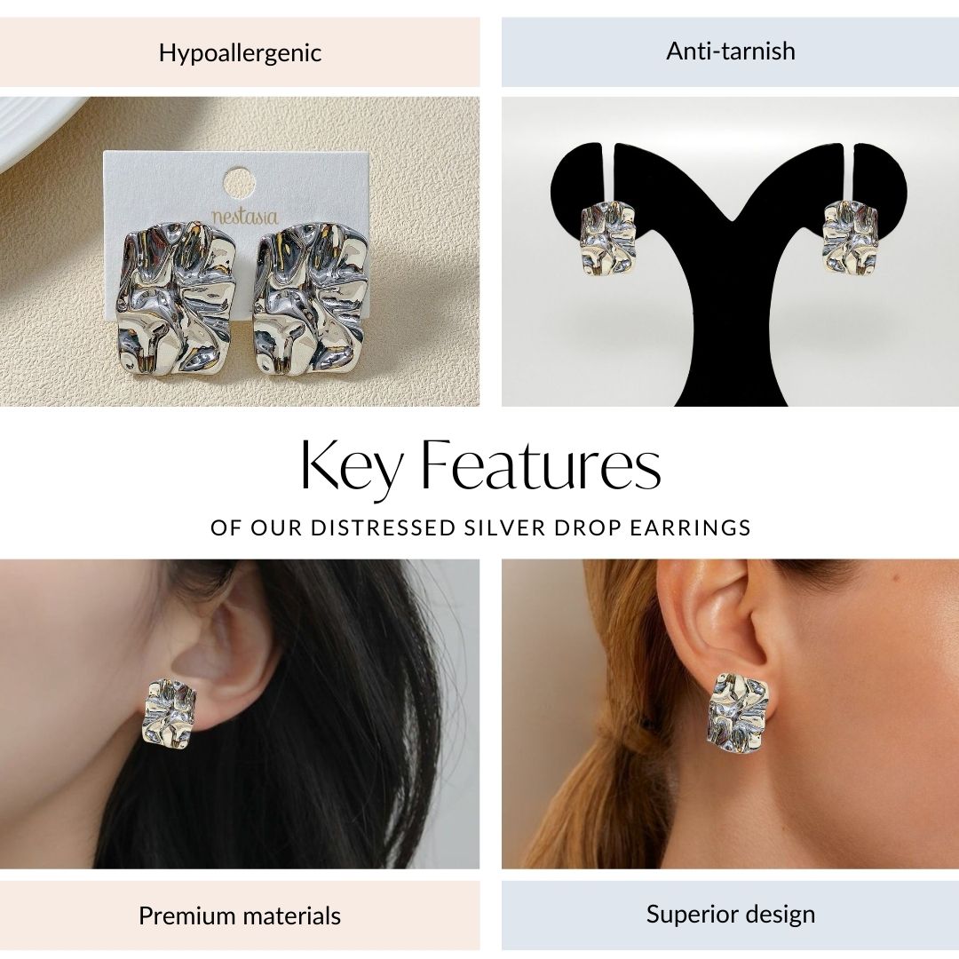 Nestyle: Pair these silver dented drop earrings with a black dress and a bold red lip for a chic contrast that effortlessly balances edgy and elegant.