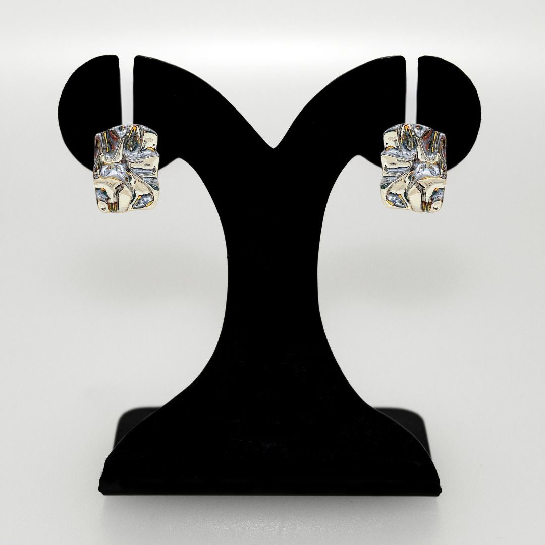 Make a statement with these silver metal drop earrings, crafted from beautifully dented metal. The subtle texture and sleek finish create a contemporary, sophisticated design, perfect for adding a touch of modern elegance to any outfit.