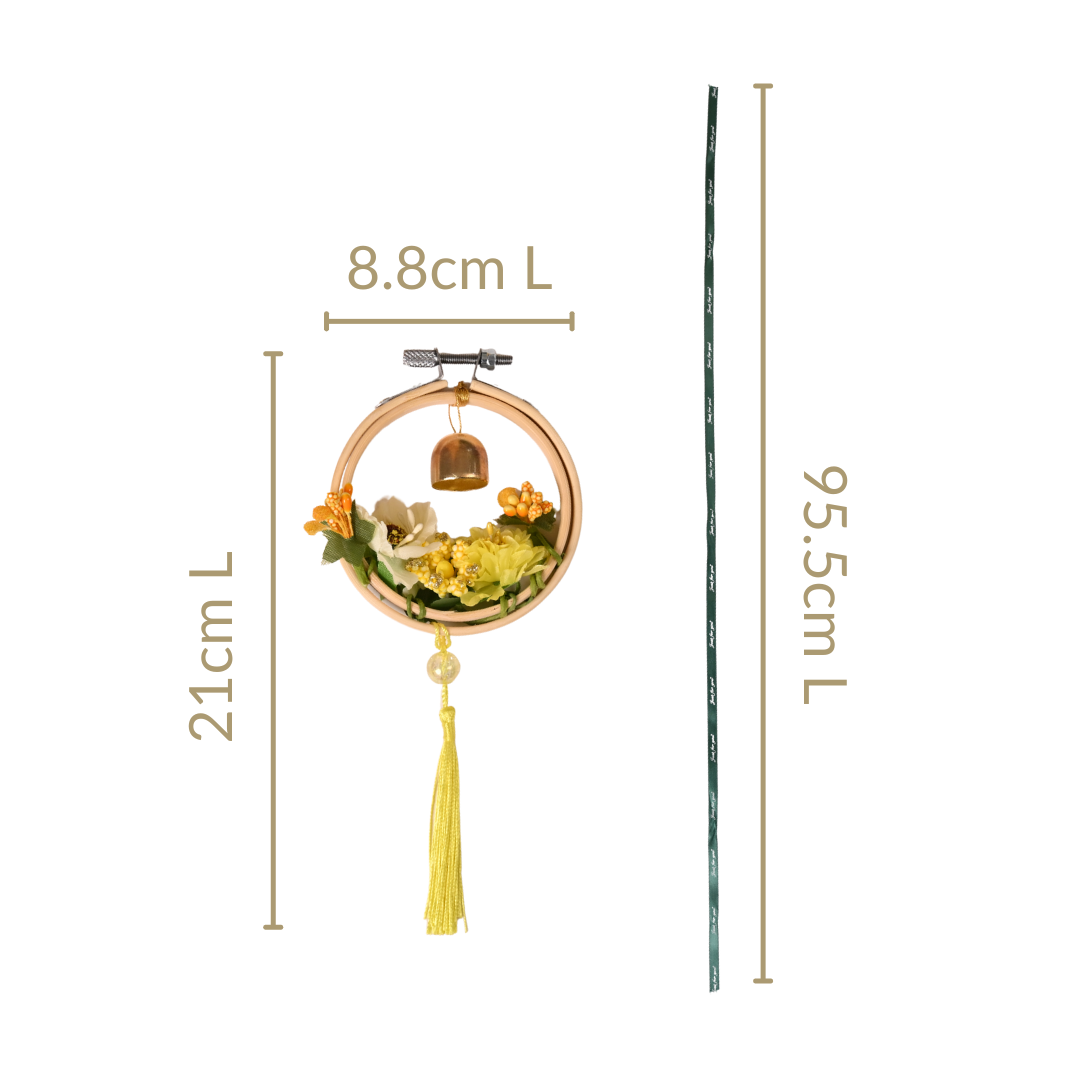 This vibrant DIY car charm instantly brightens up your drive with a splash of sunshine. The hanging car charm features a circular bamboo wood frame in a soft beige, creating a natural, rustic base that pairs beautifully with the lively yellow artificial flowers nestled around it. These vibrant blooms, crafted from soft polyester, are accented by lush green leaves for a fresh, uplifting vibe.