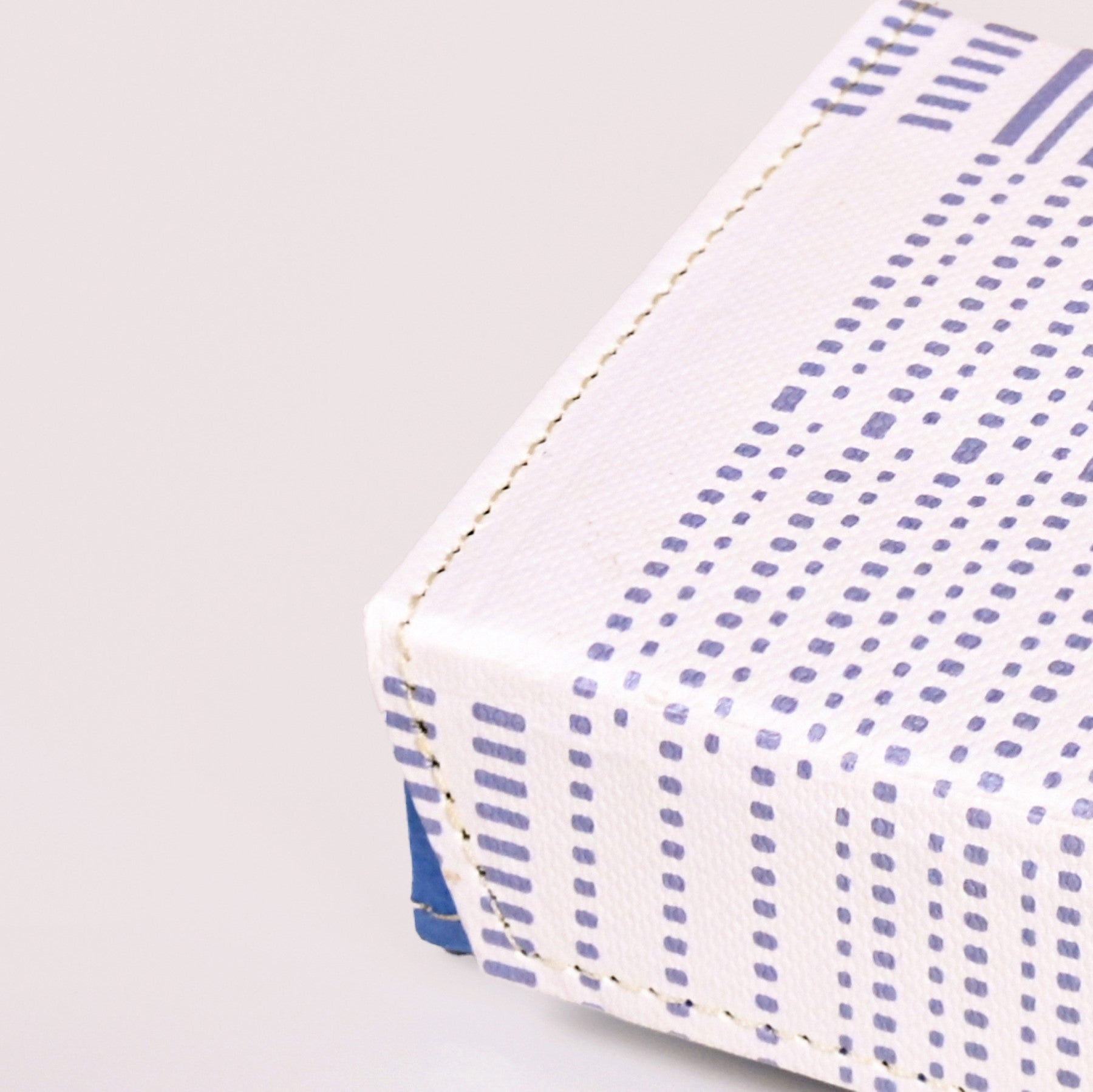 Design: With a sturdy yet lightweight build, this box features a soft blue suede-like lining to protect your precious pieces. On the outside, it's all charm, a blue and white Morse code-like print against a white backdrop and a blue base to tie it all together. Inside, you’ll find a dedicated space for rings, earrings, and studs, plus a mirror to check your sparkle on the go. The clasp? Super secure, so everything stays put.