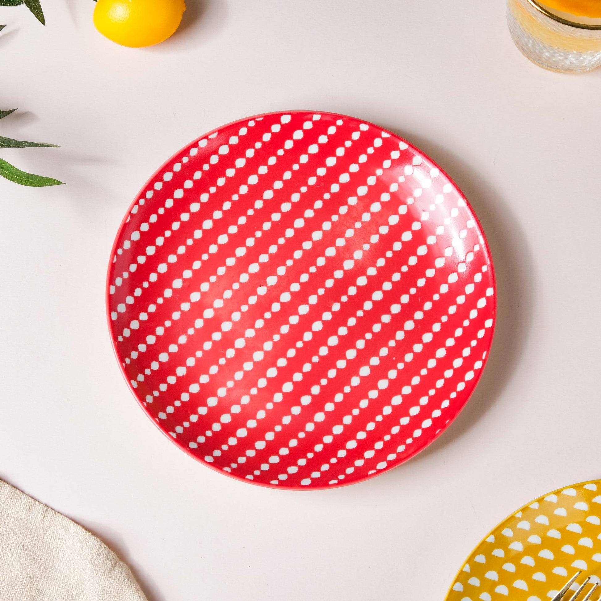 Dotted Red Ceramic Snack Plate 7.5 Inch Set of 2