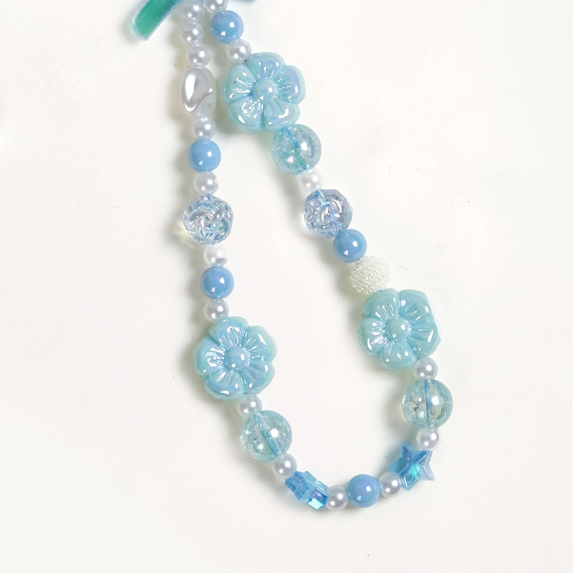 Make your phone look ten times prettier with this captivating blue-themed phone lanyard. Designed with a durable blue polyester thread, it features a delightful combination of textured faux pearls, translucent and baby blue beads, and striking larger pearls. Accentuated by beautiful blue flowers, the phone charm also boasts a charming blue bow that adds a playful yet classy touch.