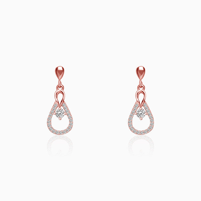The Rose Gold Zircon Drop Earrings have a teardrop dangling pattern with zircons and finished with a layer of rose gold pattern and zircon stone.