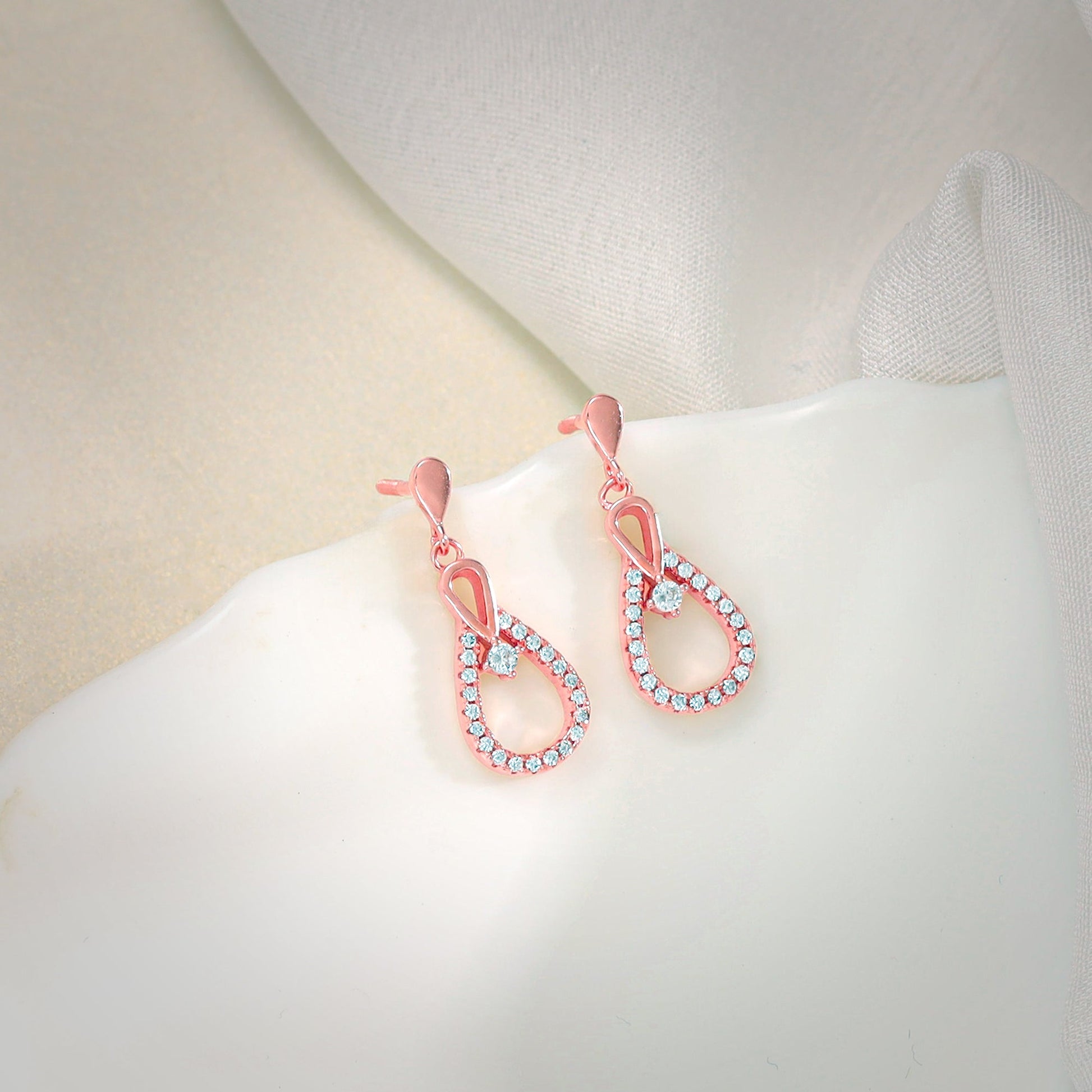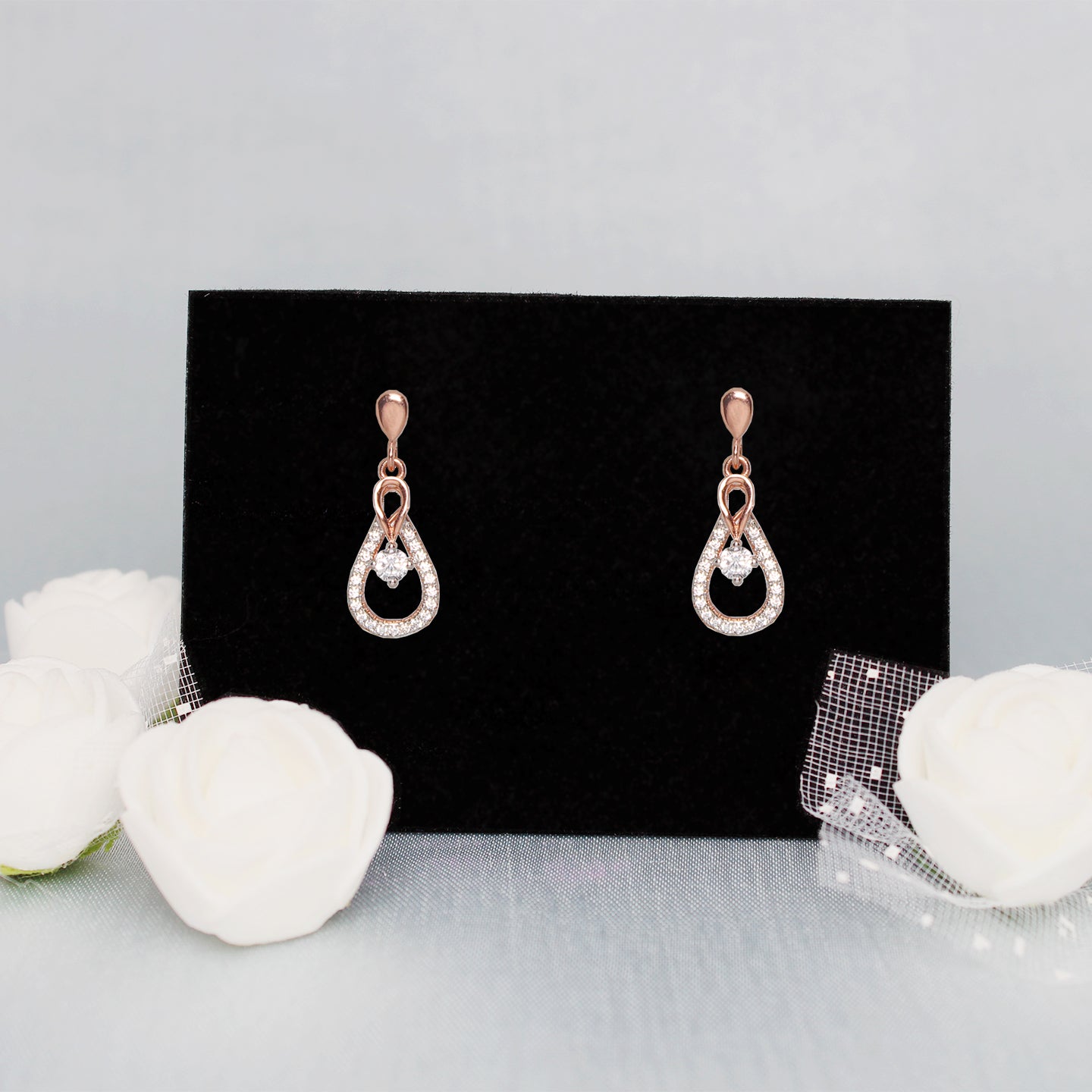 The Rose Gold Zircon Drop Earrings are inspired by the sudden drizzle, a whisper of the nature's beauty.