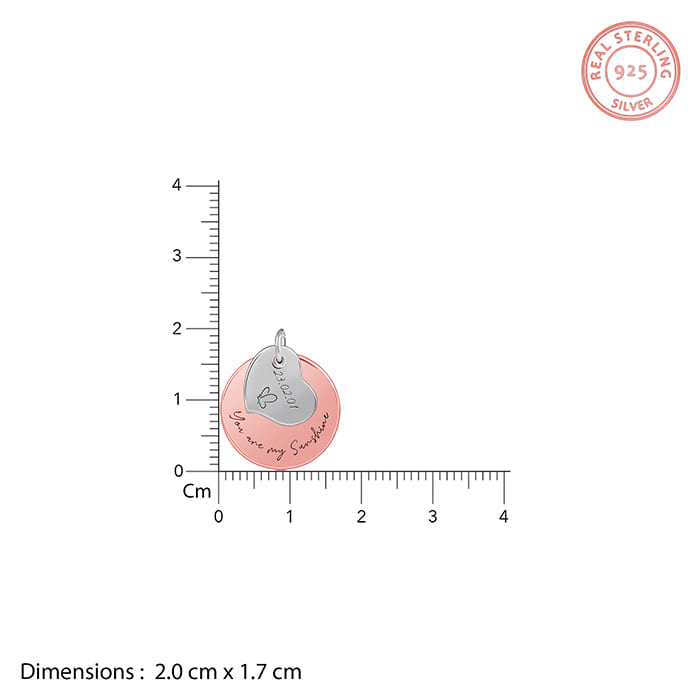 This personalised womens necklace features a rose gold plated circular charm with engravings of your choice. A heart motif layers on top, engraved with a word or date of your choice.