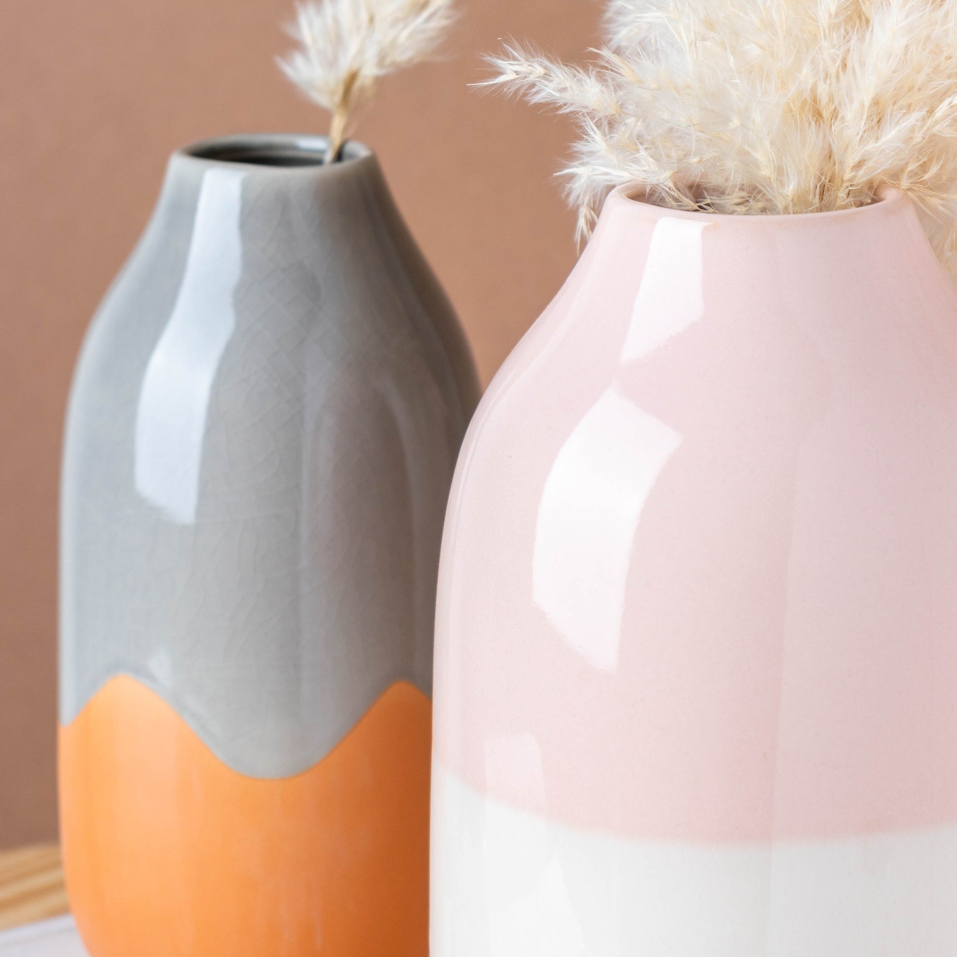 With a beautifully constructed base containing a precise characterization of two contrasting tones, the ceramic vase has a polished, glossy appeal. On-trend designs meet timeless modernism in this high-quality ceramic plant pot. It's the ideal décor piece as well as a sumptuous addition to any series of high vases.