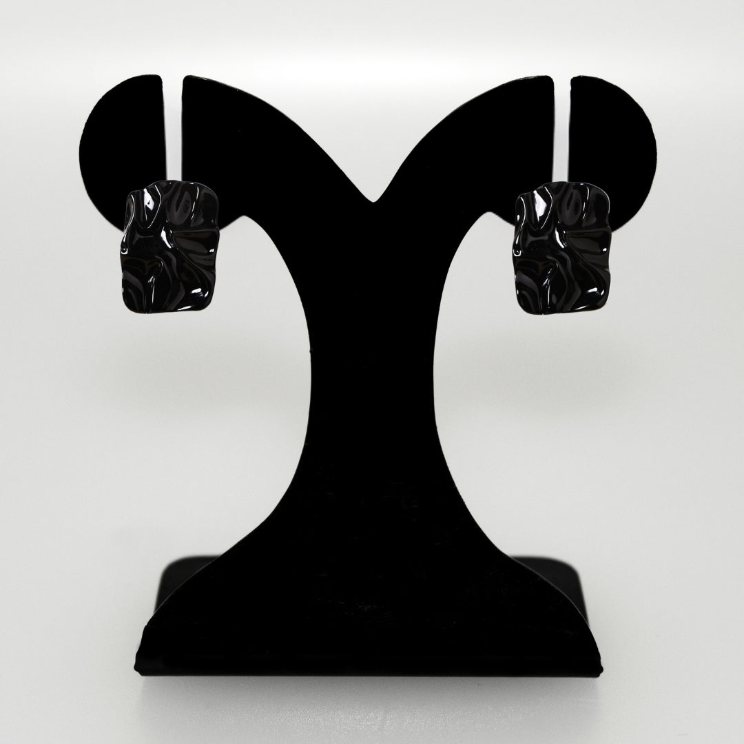 Bold and captivating, these black rectangular stud earrings make a striking statement in any costume jewellery collection. The design draws inspiration from the asymmetric textures of sedimentary rocks, reflecting nature’s raw, layered beauty. Each earring features intricate detailing, creating a one-of-a-kind, modern look. With their sleek black finish and unique design, they offer versatility for both casual and formal styles. Crafted for lasting comfort and durability, these studs are the perfect accessory to elevate your ensemble with an edgy, nature-inspired touch.