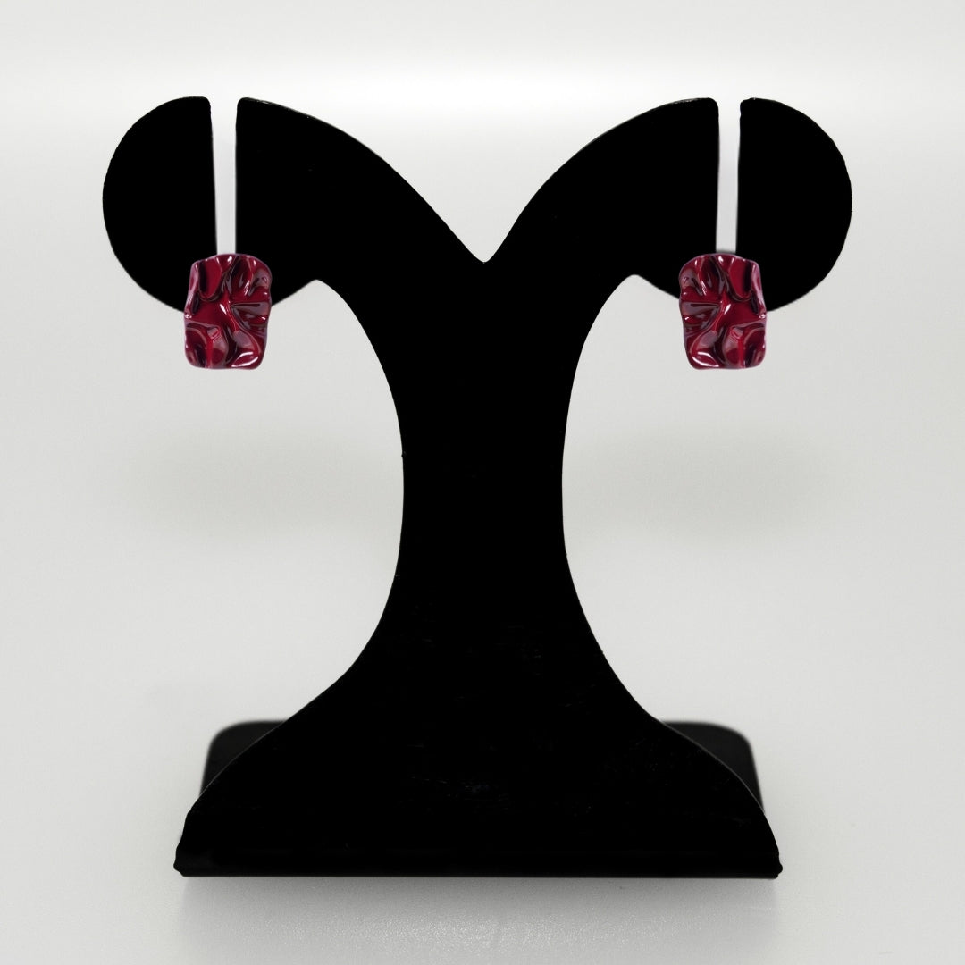 Unleash a bold statement with maroon rectangular stud earrings that exude modern charm. Inspired by the asymmetric textures of sedimentary rocks, their design beautifully mirrors nature’s raw artistry. The deep maroon hue paired with intricate patterns creates a captivating visual appeal, perfect for making an impression. Lightweight yet durable, these chic studs blend style and comfort effortlessly, making them a versatile choice for any occasion.