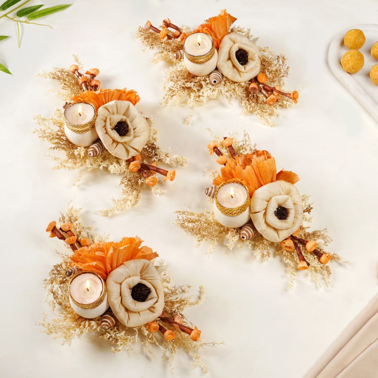 Ecofriendly Tealight Candle Holder Orange Set Of 4