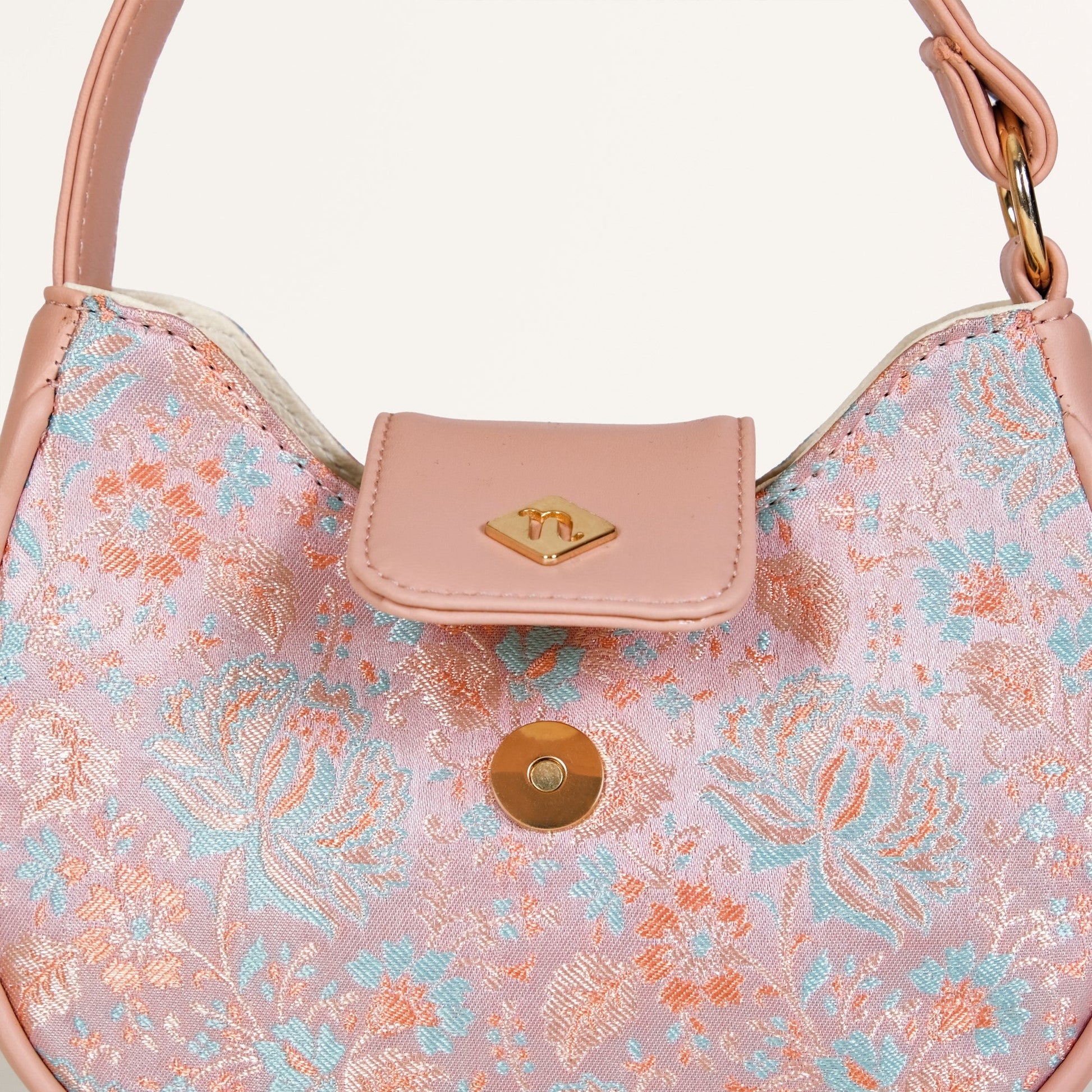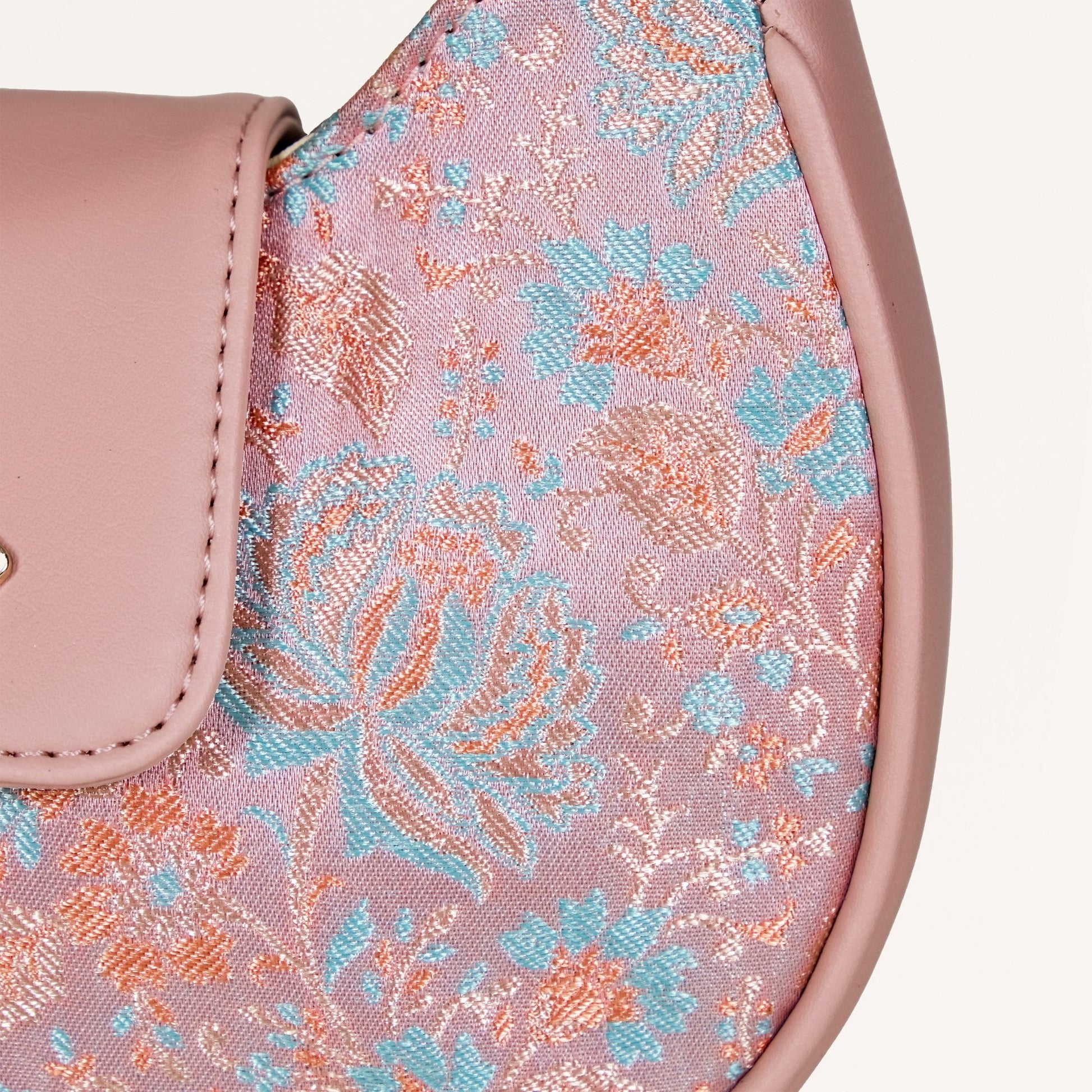 Inspiration: The Eden Moon Bag is inspired by the serene beauty of blooming gardens and tranquil moments in nature. Named after the lush paradise described in the Garden of Eden, this handbag encapsulates the essence of abundance and grace. The intricate floral motif reflects the vibrant colours found in nature, celebrating the delicate interplay of flowers in full bloom.
