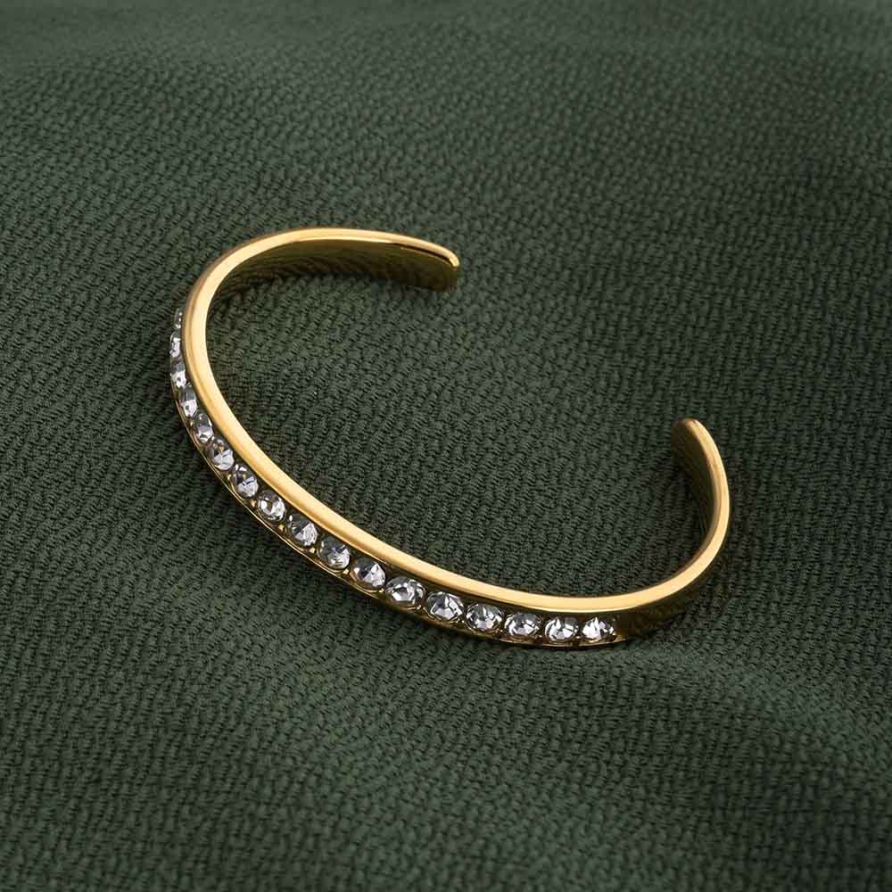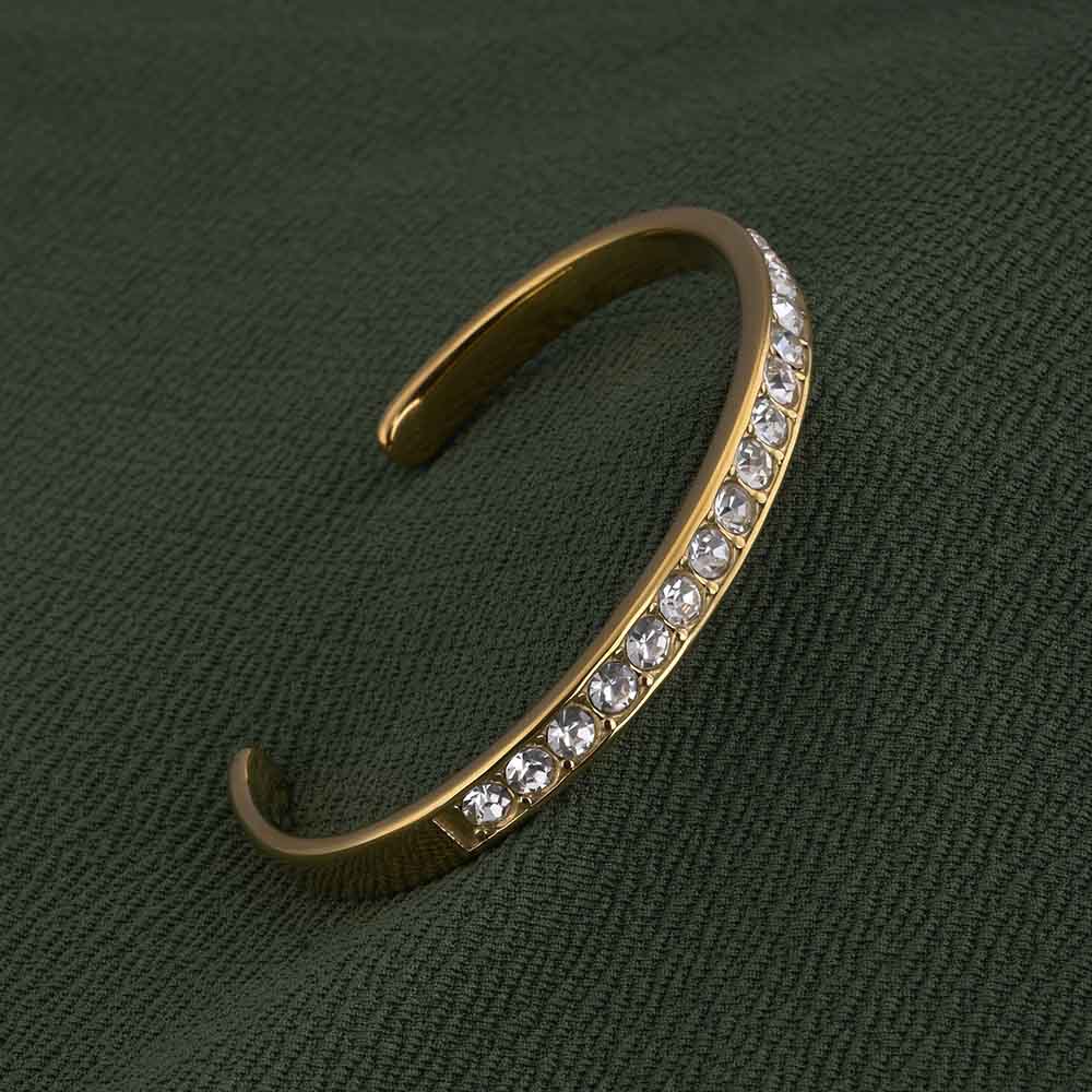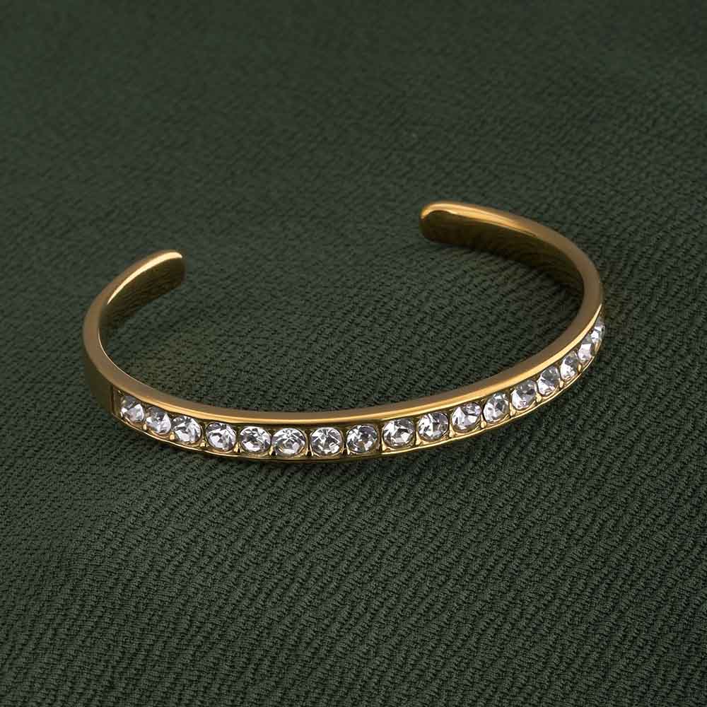 The Elegant Zirconia Studded Gold Bracelet is crafted to shine with brilliance and charm. Every zirconia stone tells a story of sparkle, making this bracelet a radiant companion for joyous occasions. Its golden allure paired with dazzling stones evokes a sense of celebration and grace. A keepsake of glamour, this bracelet is not just jewellery but a reflection of elegance that adds sparkle to life’s most memorable moments.