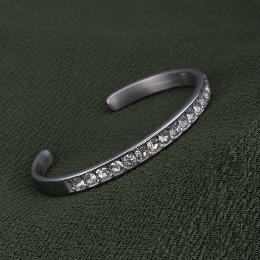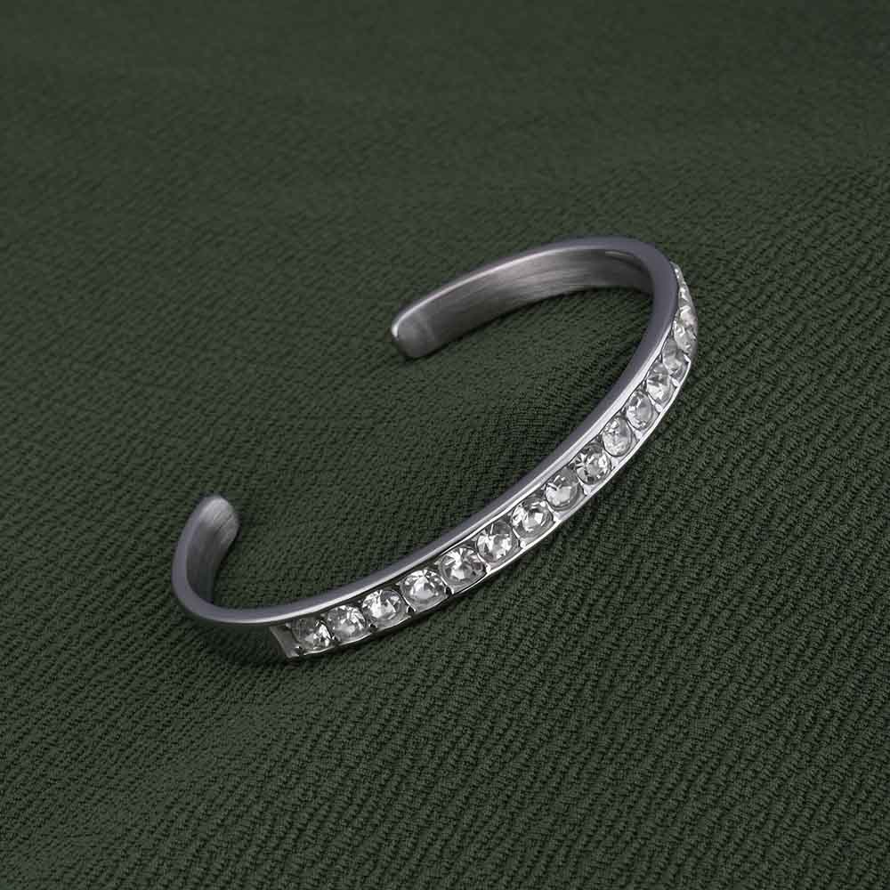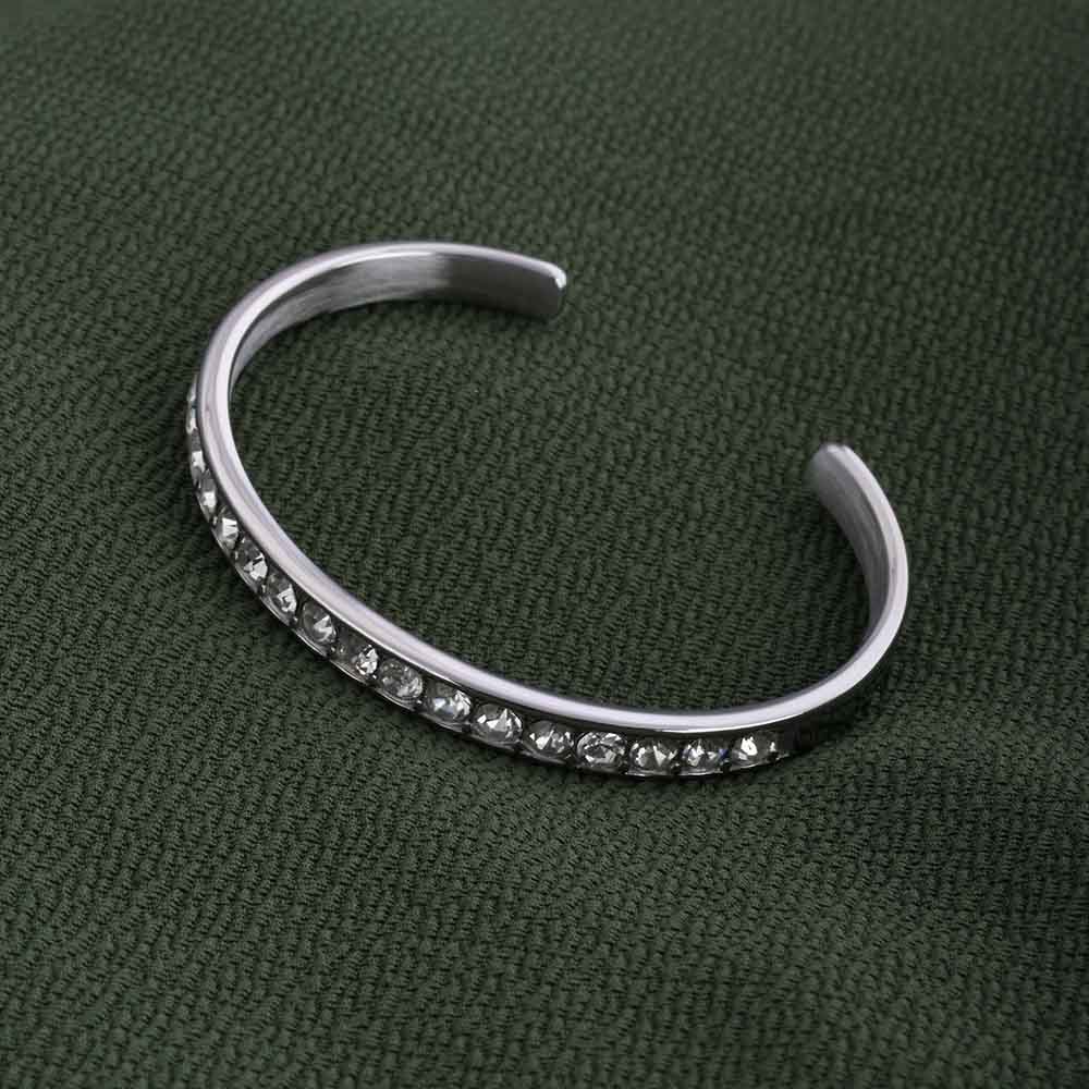 The Elegant Zirconia Studded Silver Bracelet for women is the perfect balance of sophistication and sparkle. Designed in rhodium-plated stainless steel, this cuff features dazzling zirconia accents that add a refined brilliance without being overpowering. Waterproof and anti-tarnish, it’s crafted for durability and everyday elegance, making it a versatile piece that transitions seamlessly from daywear to evening glamour.