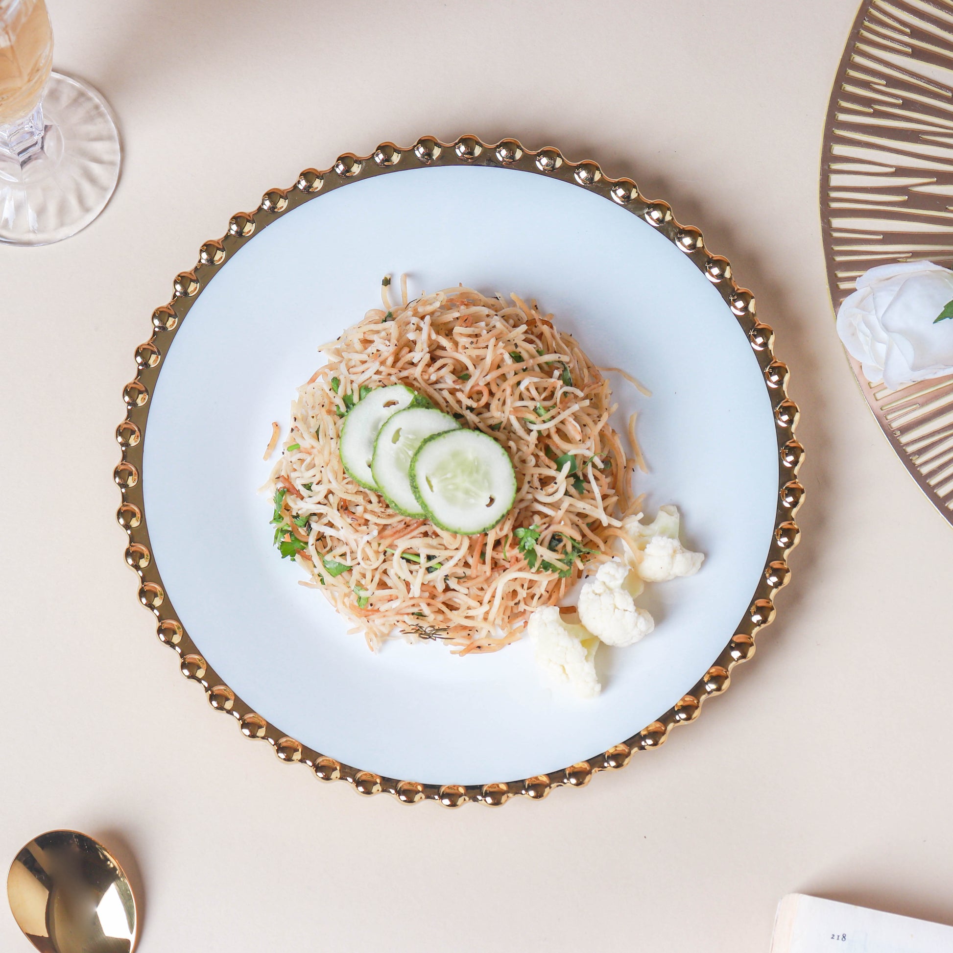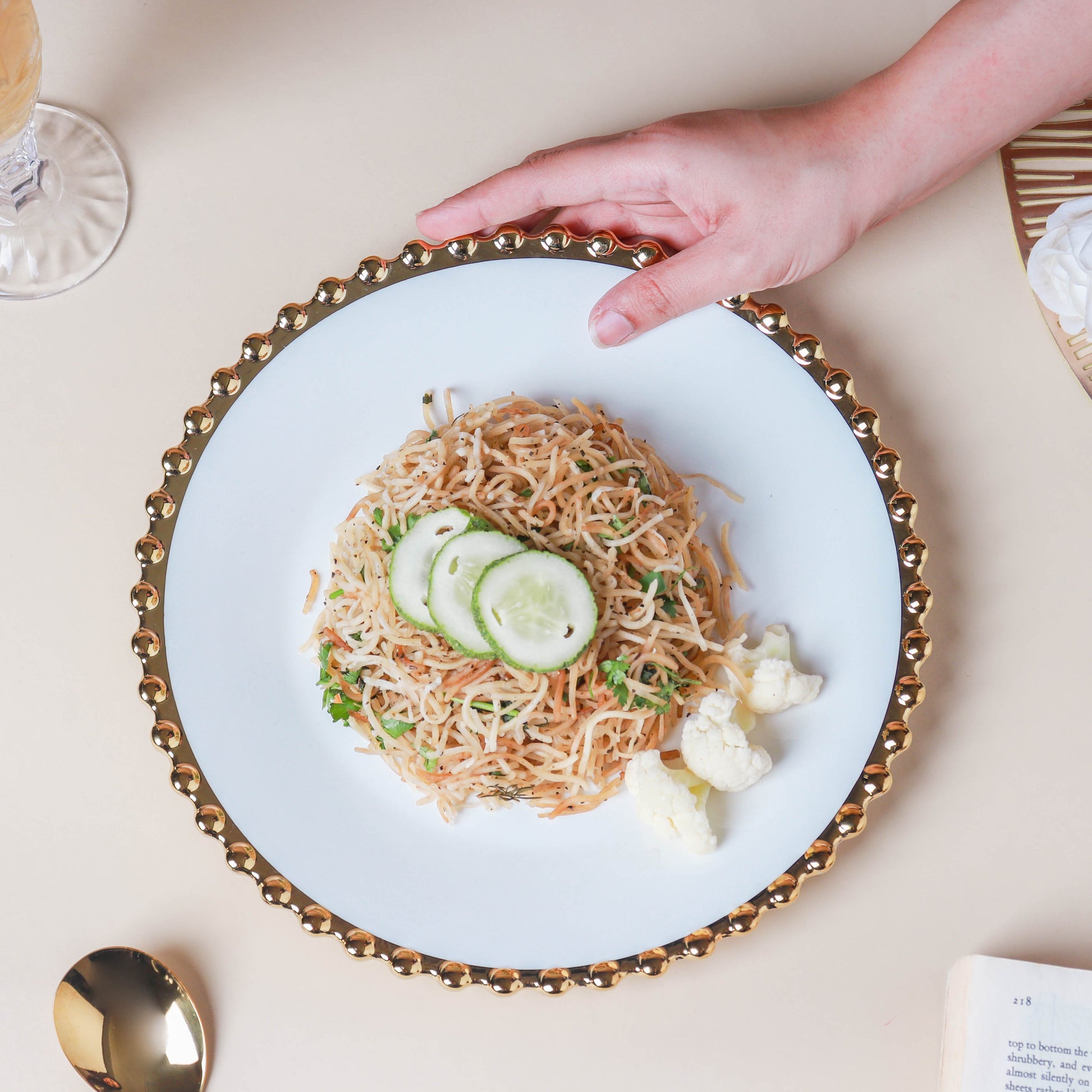 Nestip: Place the gold rim plate in a hamper along with gold cutlery and gift it at a housewarming event.