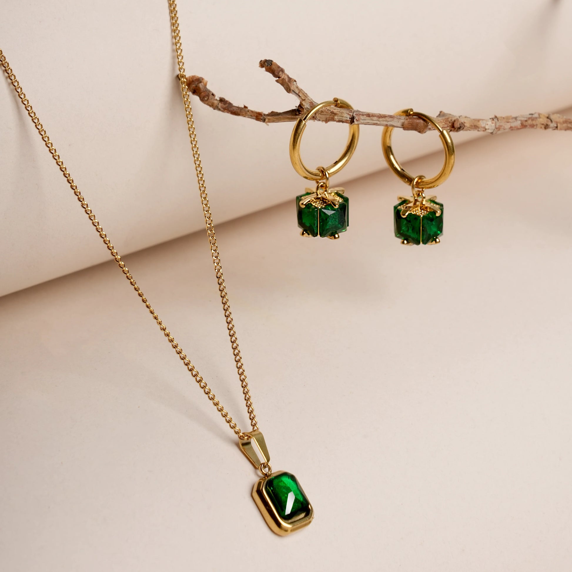 Capture hearts and compliments with the Emerald Hoop Earrings & Classic Emerald Necklace Jewellery Set, tailored for the fashion-forward jewellery lover.