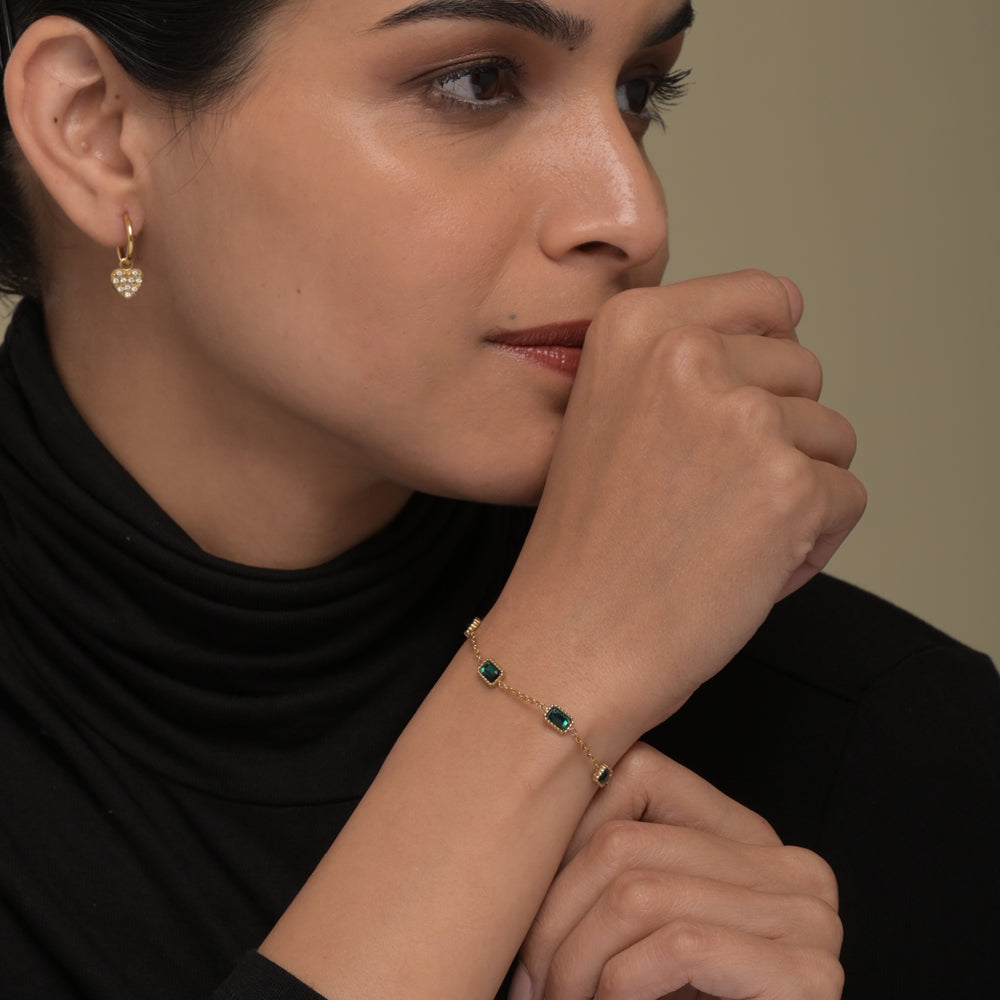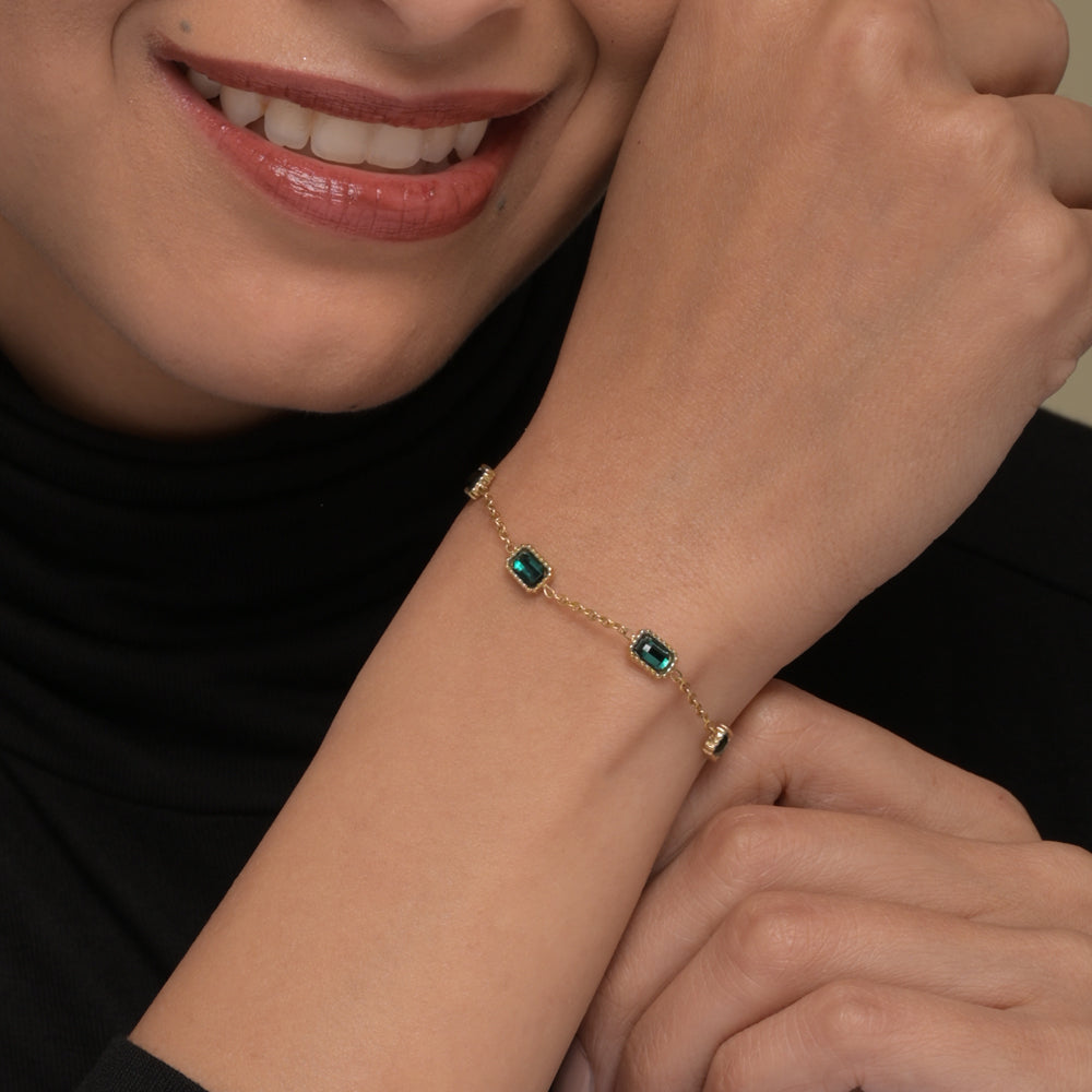 Handcrafted with care and dedication, this delicate bracelet has multiple emerald stones set on it. The fine and dainty design of the bracelet gives it an elegant look.