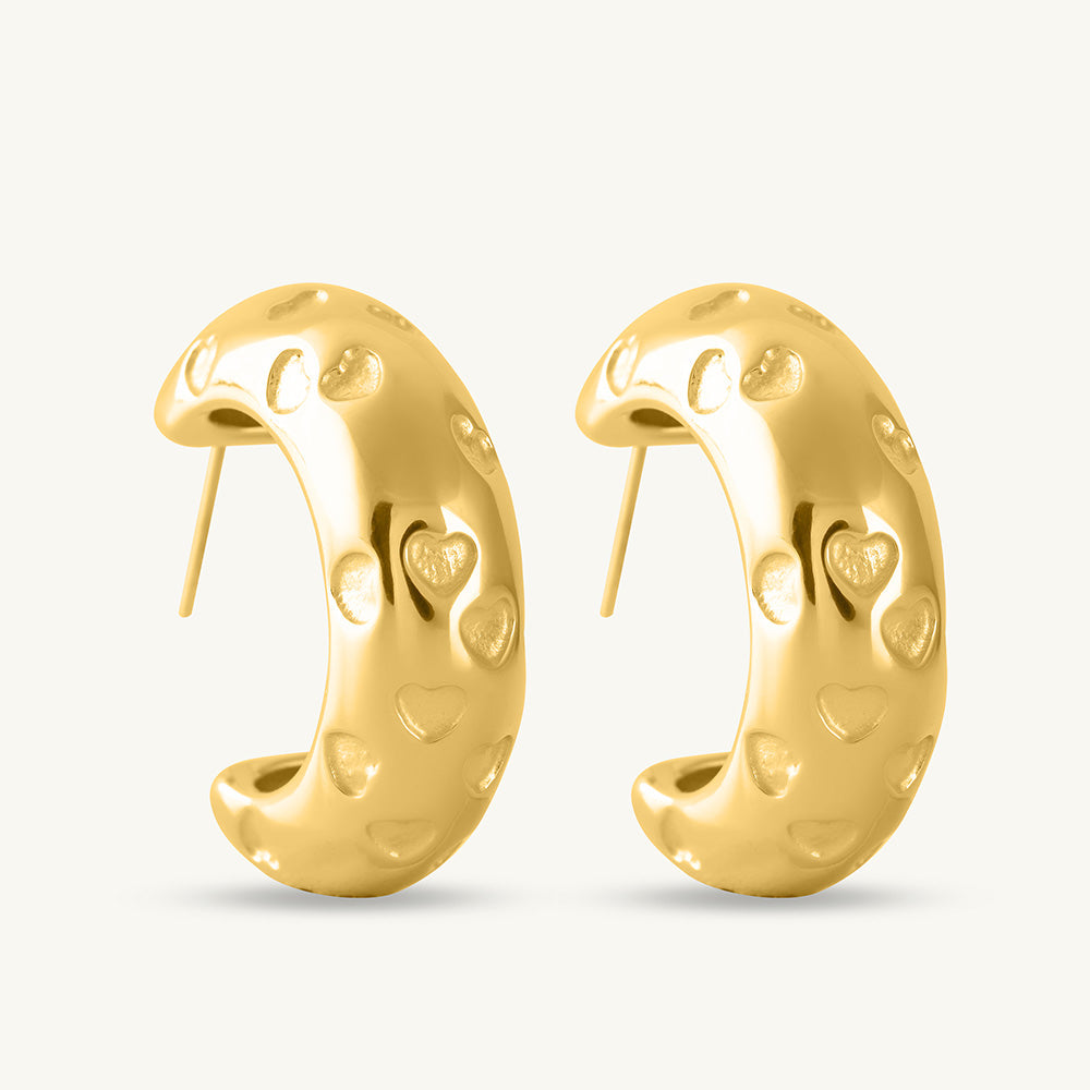 Engraved Heart Curved Earrings | Gold