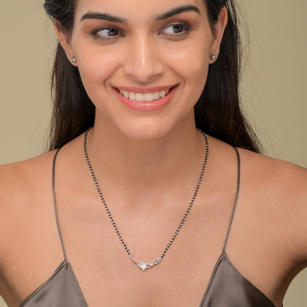 Embrace everlasting love with our Eternal Harmony Silver Mangalsutra. The stunning infinity pendant, adorned with intricate patterns, symbolizes eternal unity. Crafted in sterling silver, this piece is made with utmost precision and love to symbolise your marital status perfectly. A perfect fusion of style and sentiment, this mangalsutra captures the timeless essence of marital bliss