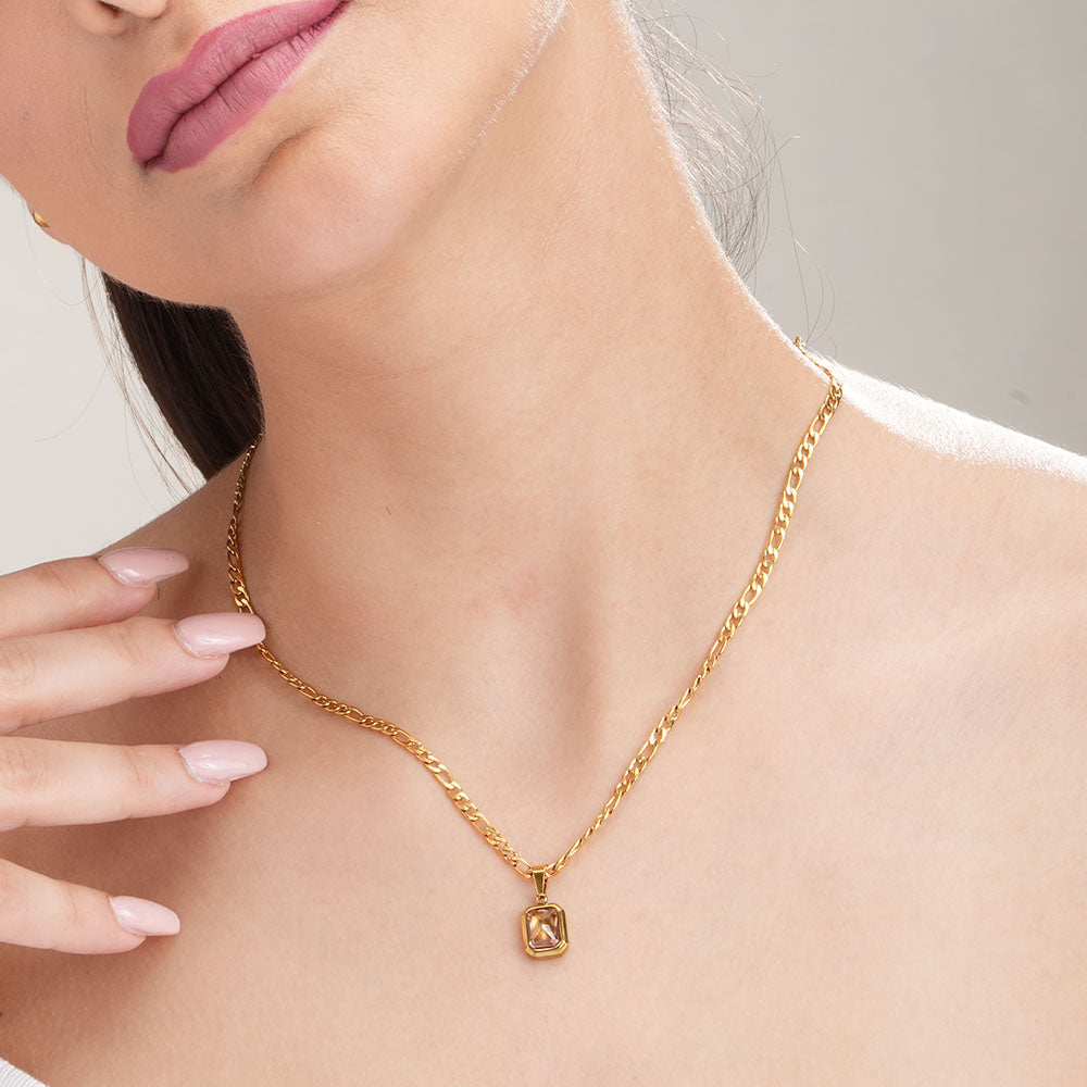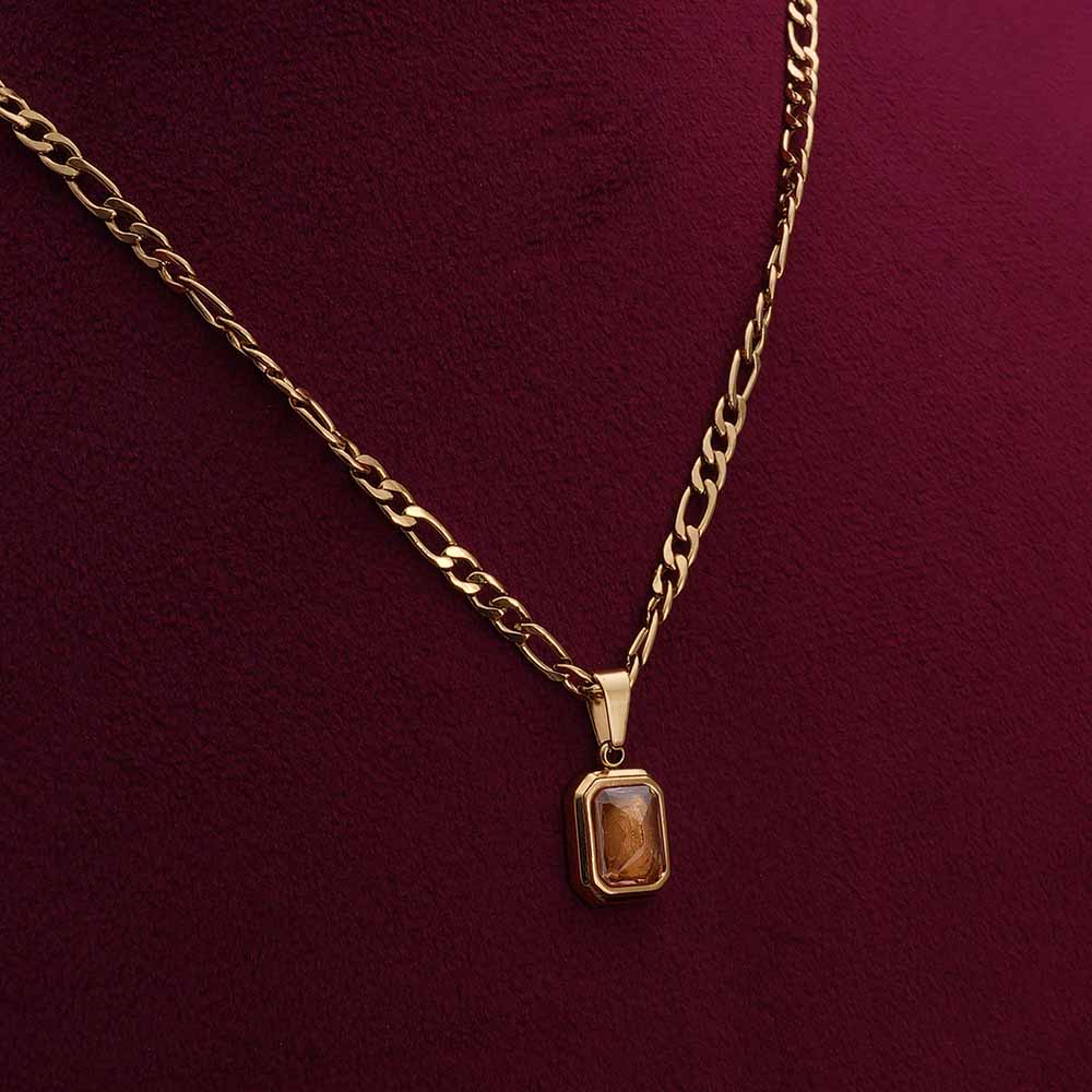 The Everyday Exquisite Brown Stone Gold Necklace is a versatile and sophisticated jewellery piece. Featuring a warm brown cubic zirconia set in 18k gold-plated stainless steel, this pendant necklace adds subtle depth and elegance to any outfit. Perfect for layering or wearing solo, it elevates both casual and dressy ensembles, making it a refined, contemporary addition to your collection.