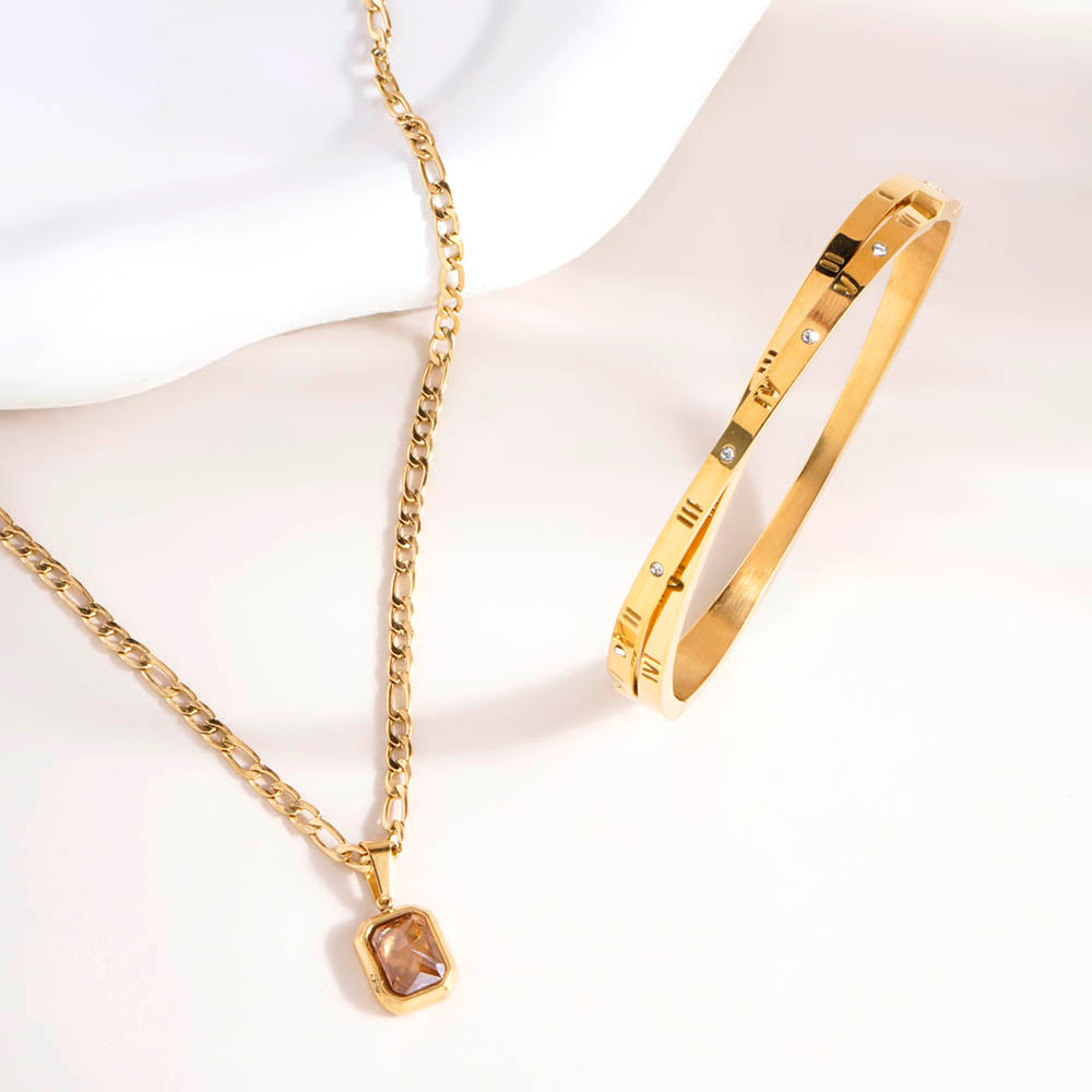 Everyday Exquisite Brown Stone Gold Necklace & Roman Tales Bracelet Combo Set