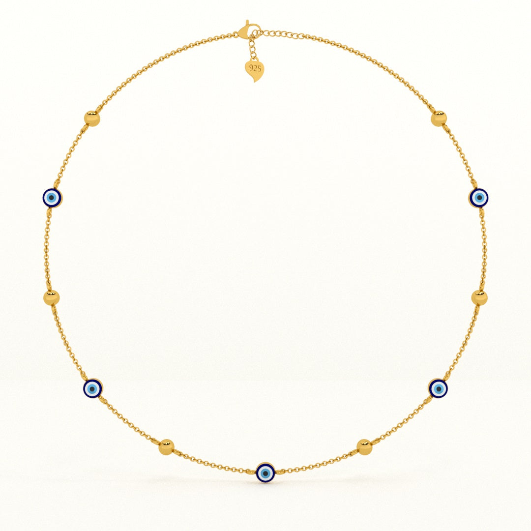 Evil Eye 925 Silver with Metal Balls Station Necklace