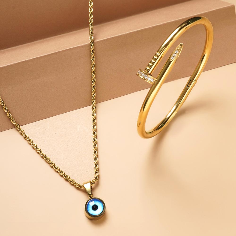 Evil-Eye Spiral Necklace & Nail Bangle Bracelet Combo Set