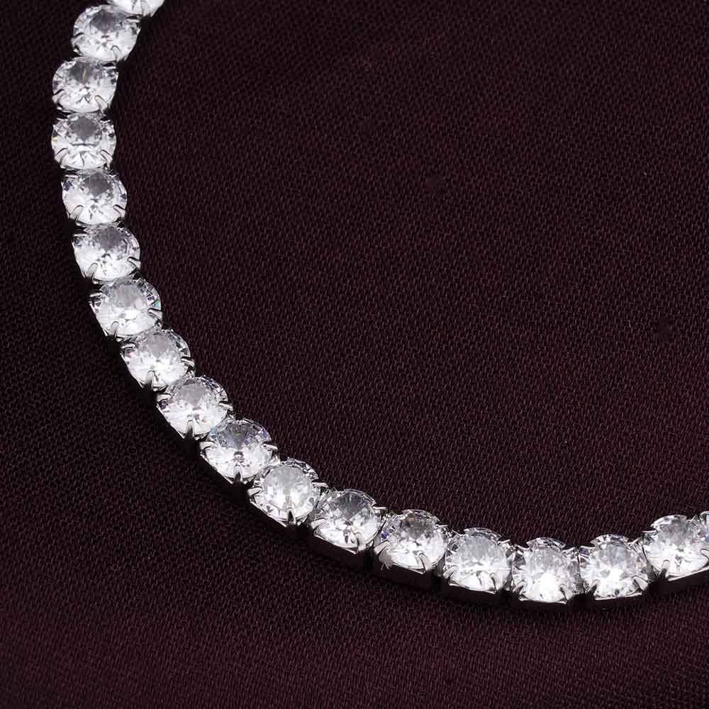 This exquisite silver studded bracelet for women shines with a row of dazzling cubic zirconia stones encircling the wrist. The rhodium plated finish elevates its brilliance while ensuring long lasting durability. With its adjustable stretch design, it promises a comfortable elegant fit ideal for day to night wear or as a thoughtful gift.