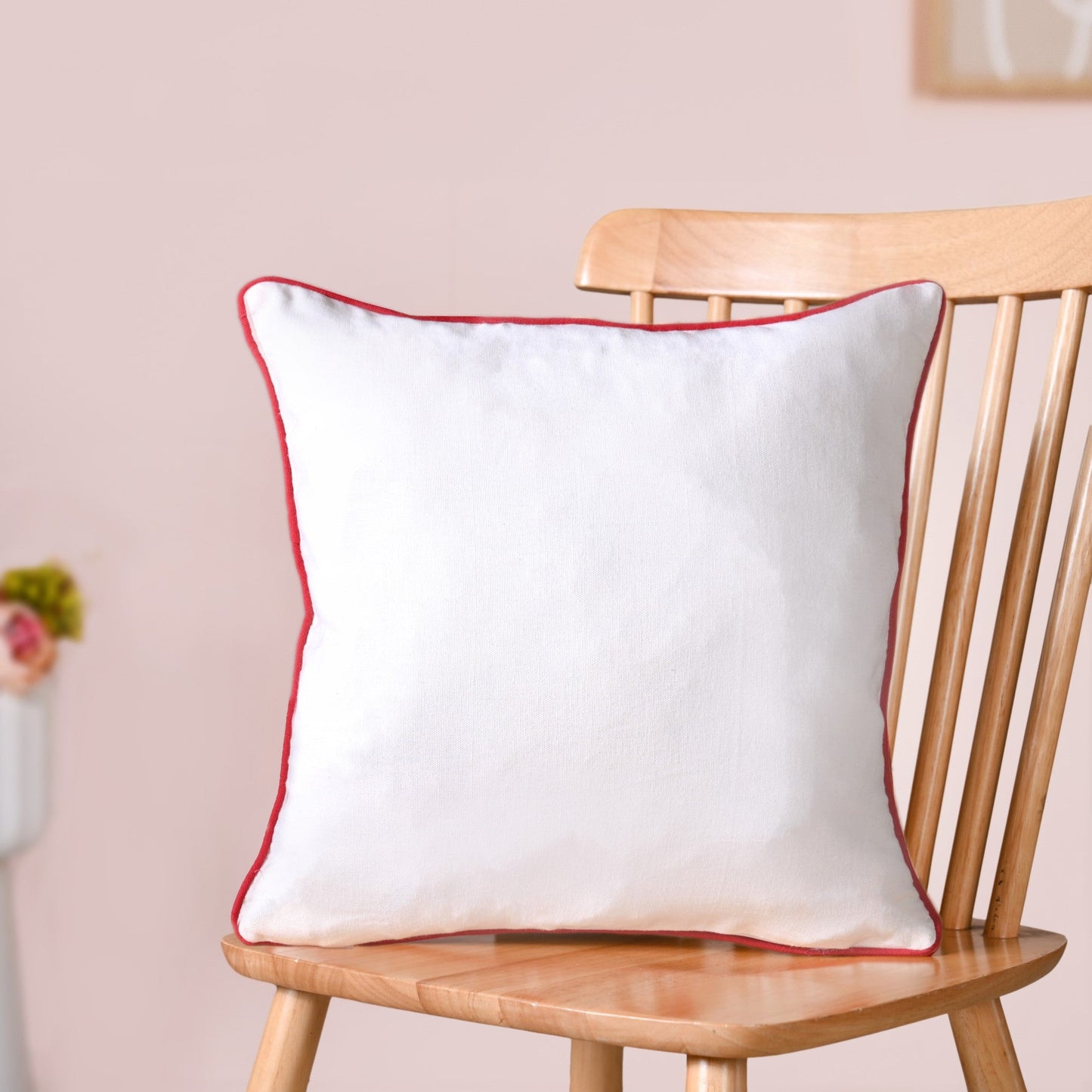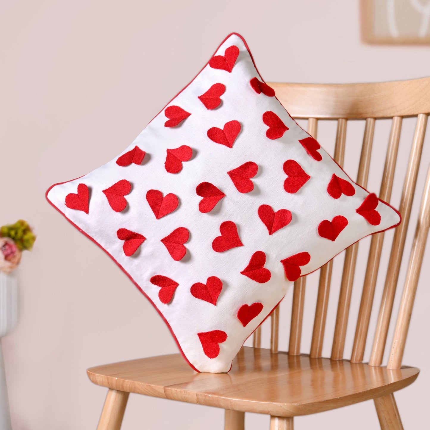 Design: The cotton pillow cover showcases stitched red applique hearts and borders adorned with a red piping design, creating a bold yet refined look. The smooth concealed zipper at the bottom ensures a sleek finish while offering easy removal for washing.
