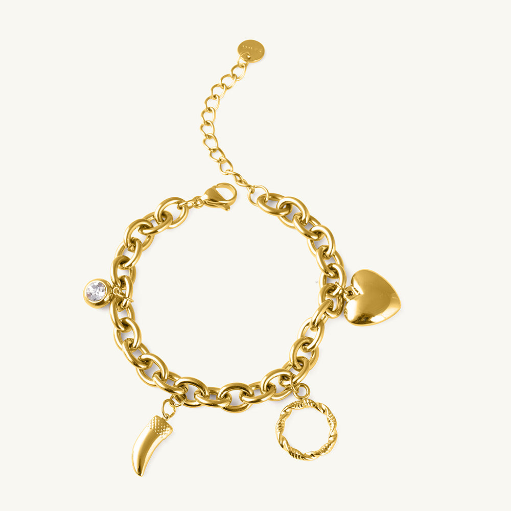 The Fierce Heart Bracelet embodies strength, passion, and elegance in one bold design. Crafted in stainless steel and finished with luxurious 18k gold plating, it features a sculpted heart motif that radiates confidence and modern charm. Waterproof, anti-tarnish, and skin-friendly, this bracelet is the perfect statement of empowered femininity - a radiant symbol of love with an edge.