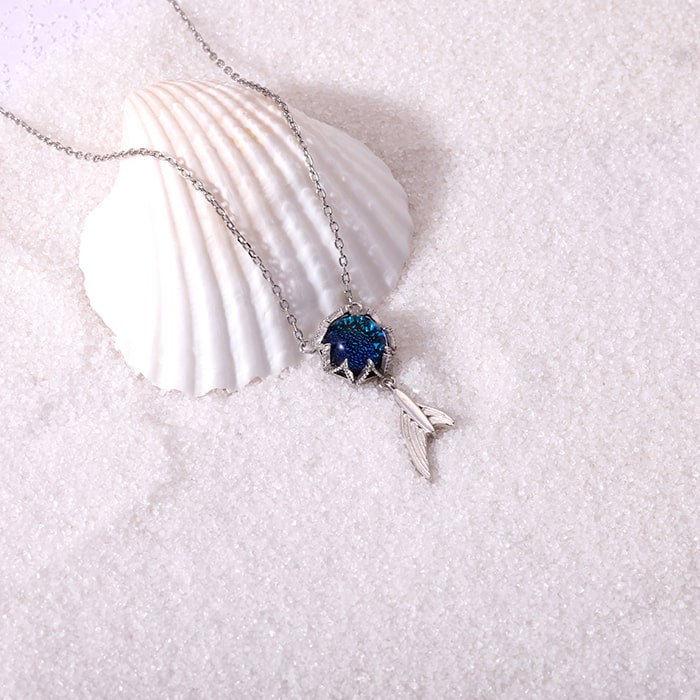 The Silver Fin in Ocean Necklace is inspired by the deep blue sea and the mysteries hidded inside it.