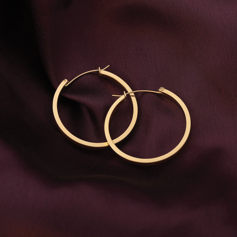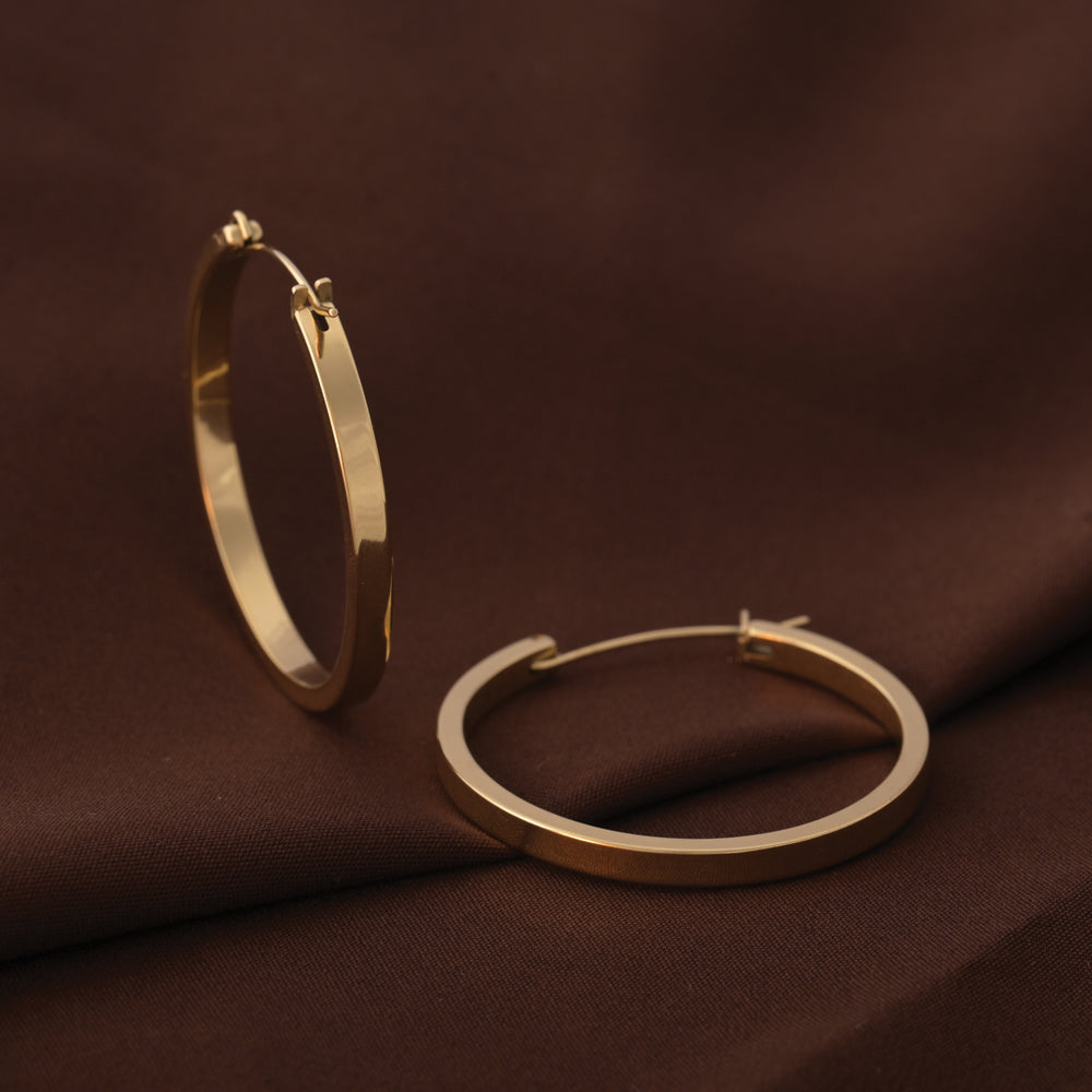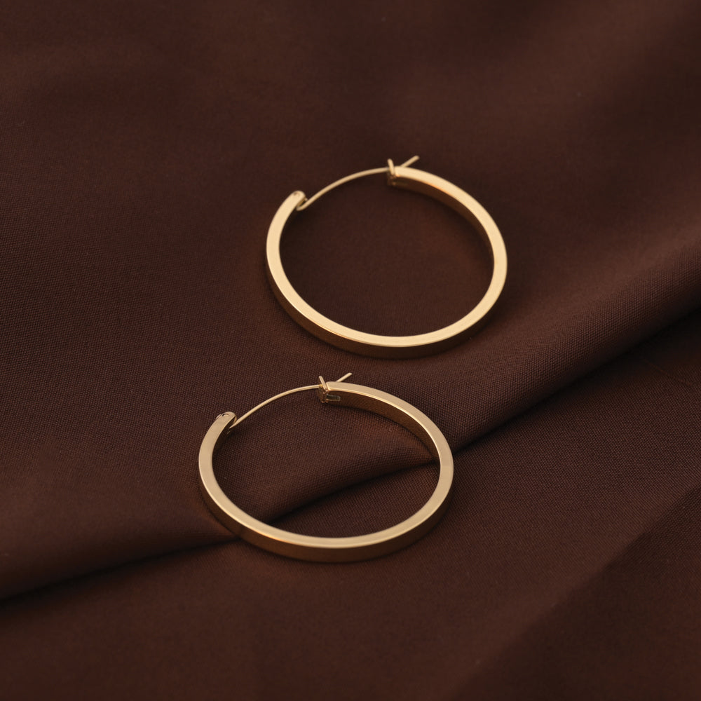 These earrings for women are more than adornments; they're an expression of your unique style. The gold-plated finish not only adds a touch of opulence but also ensures durability, allowing you to enjoy these earrings for years to come. The flat round shape adds a contemporary twist to the traditional hoop design, making these earrings a conversation starter and an effortless way to make a statement.