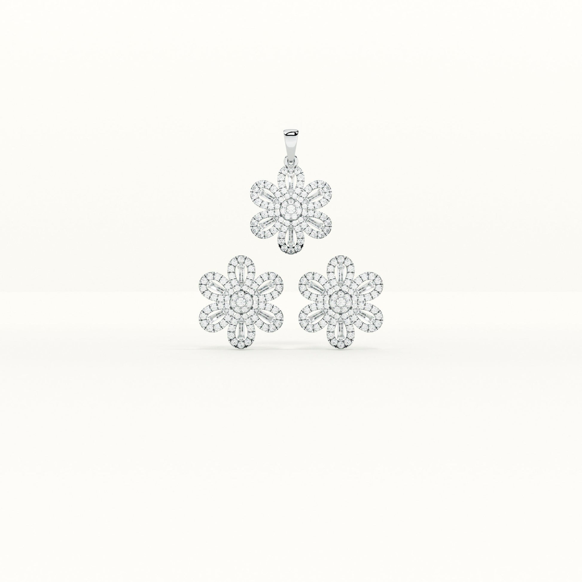 Floral CZ 925 Sterling Silver Pendant and Earring Set