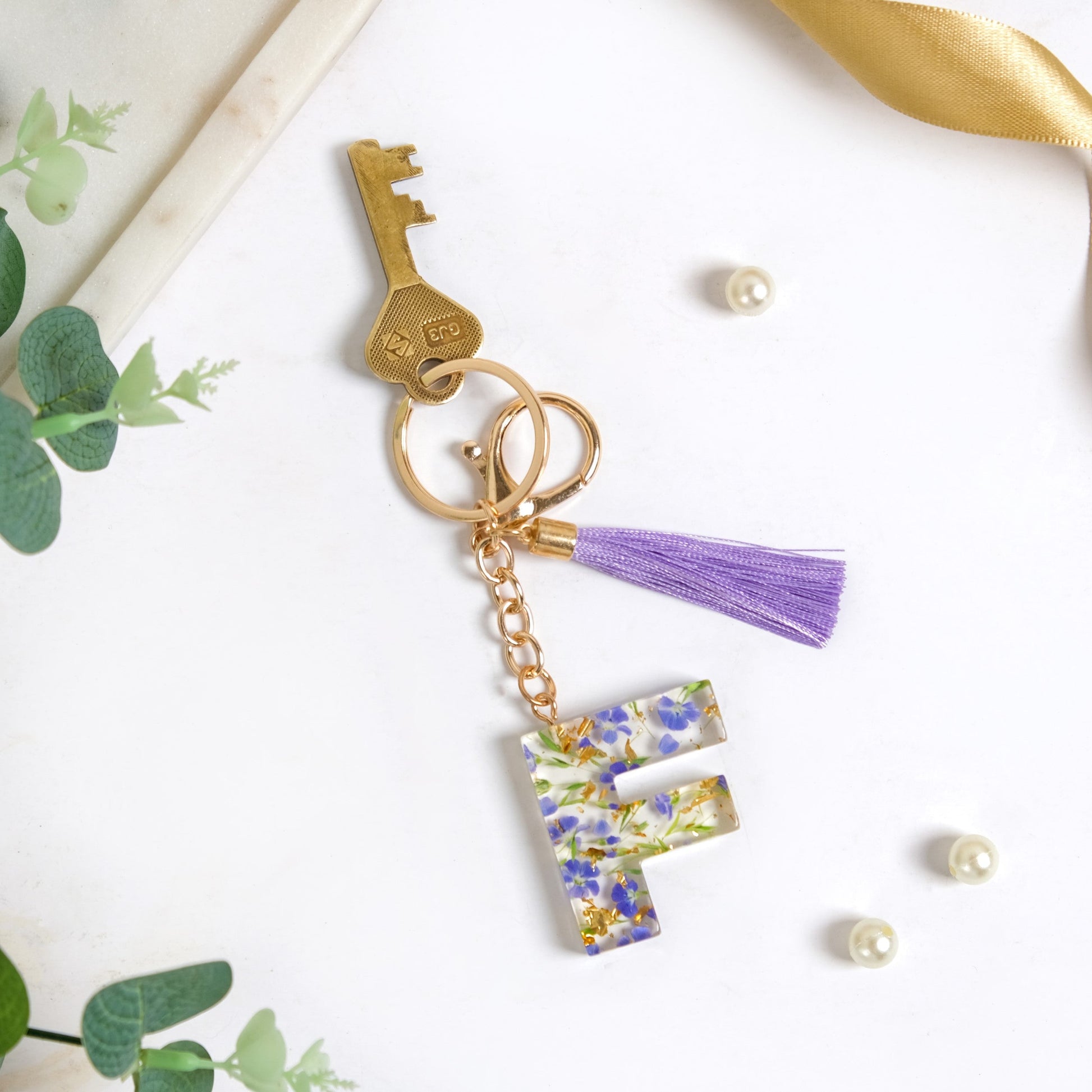 Floral Fantasy F Keychain With Satin Tassel