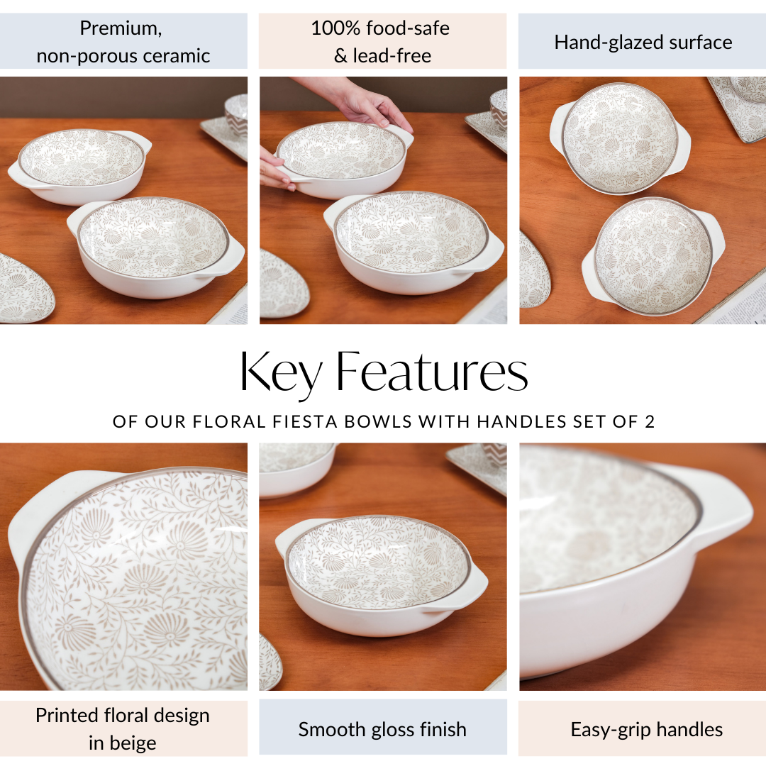 Floral Fiesta Ceramic Bowls With Handles Set Of 2 1000ml