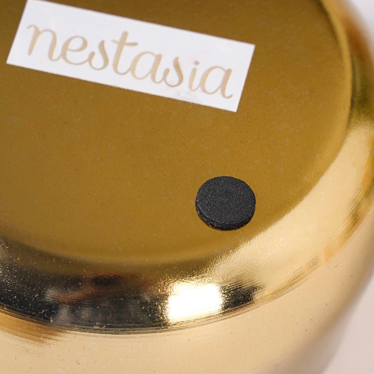 Design: Illuminate your space with our exquisite set of 2 double-wick scented candles, housed in rust-resistant, gold-plated galvanised iron bowls. Each bowl features anti-skid furniture pads, ensuring stability on any surface.