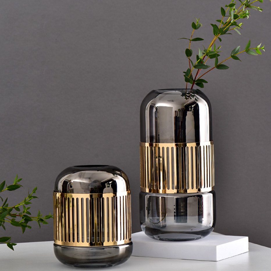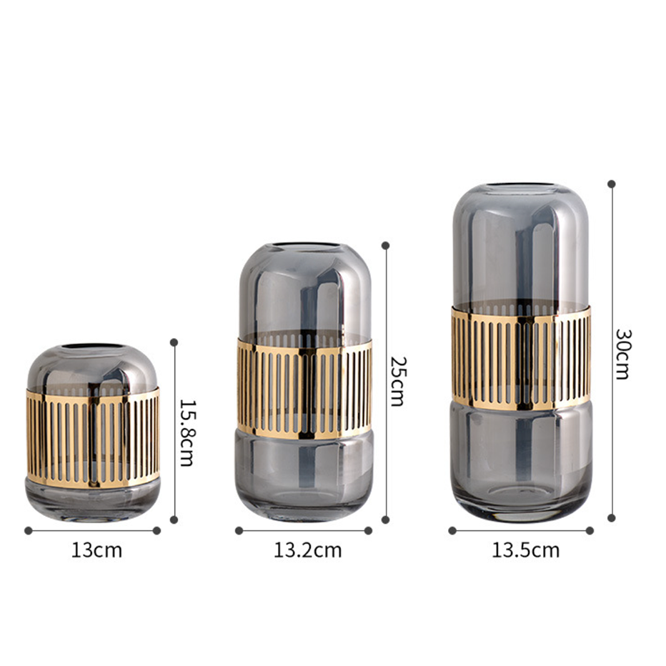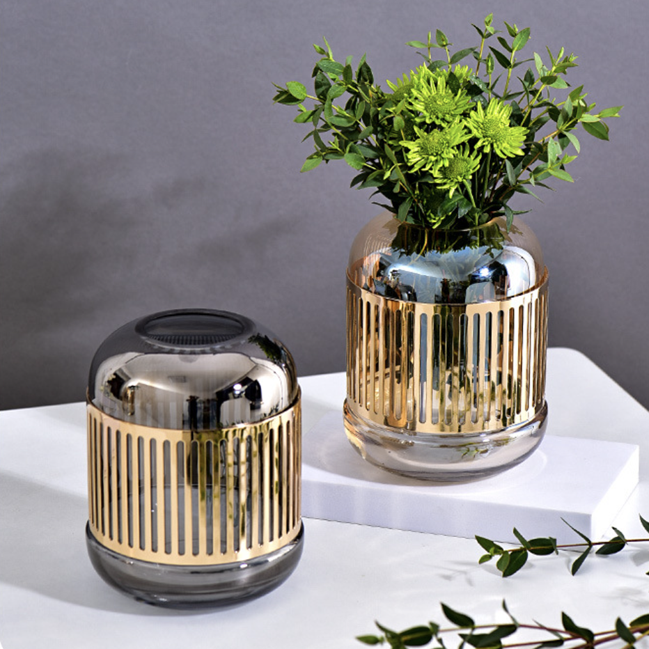 Exquisite glass vase in a delicate shade to bring a touch of luxury into all living spaces. Bringing together a fusion of the traditional and the modern, the minimalistic design glass vase has an outer metal cage-like covering which not only acts as a protective layer but also really brings together the overall aesthetic of the glass flower pot. The modern flower glass is perfect for setting flowers - artificial or natural and adding vibrancy and color to the interior decor of each room. The modern flower vase is available in two attractive shades which scream elegance - amber and ash.