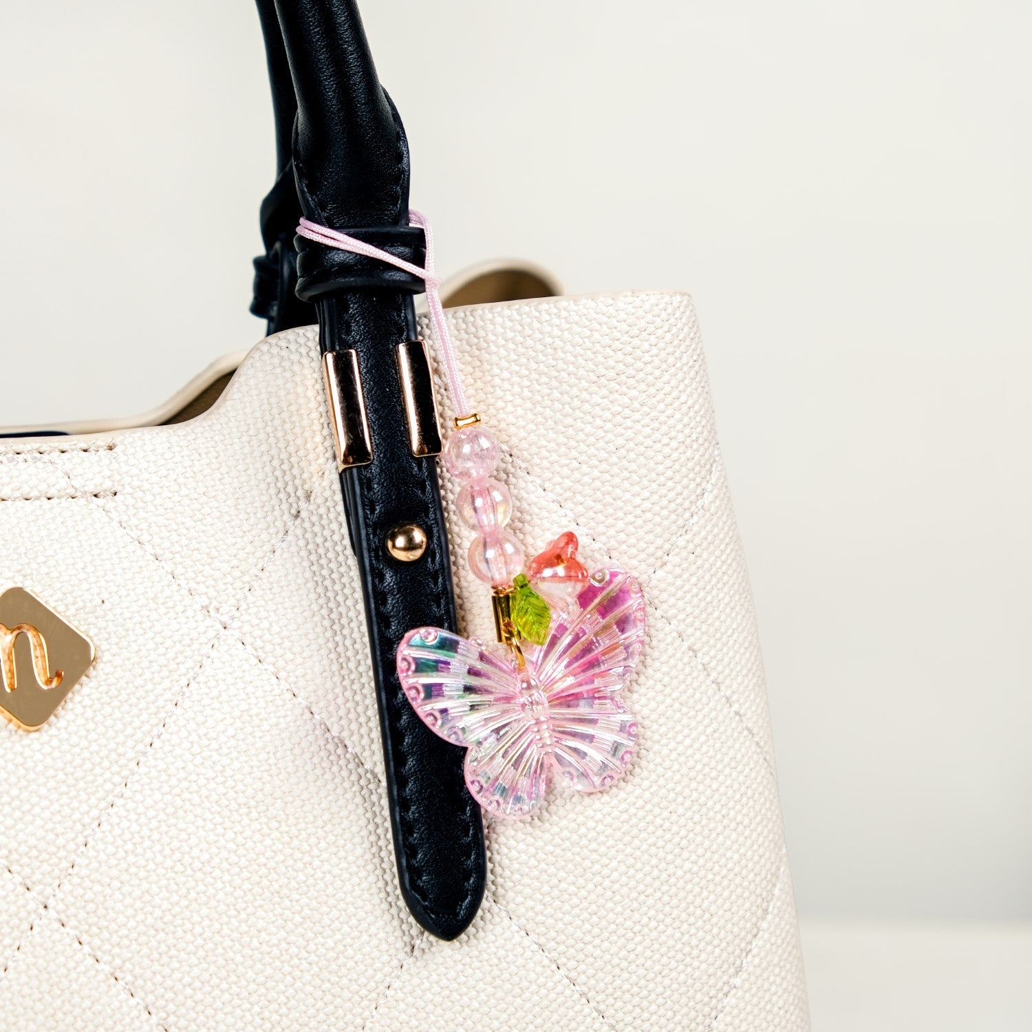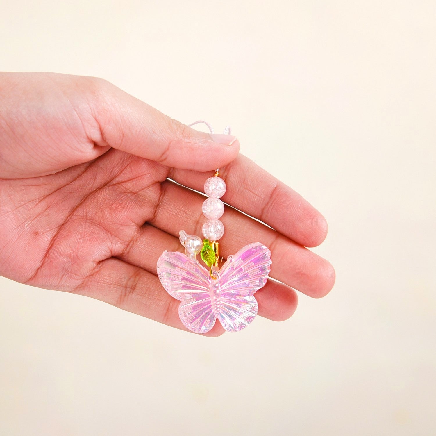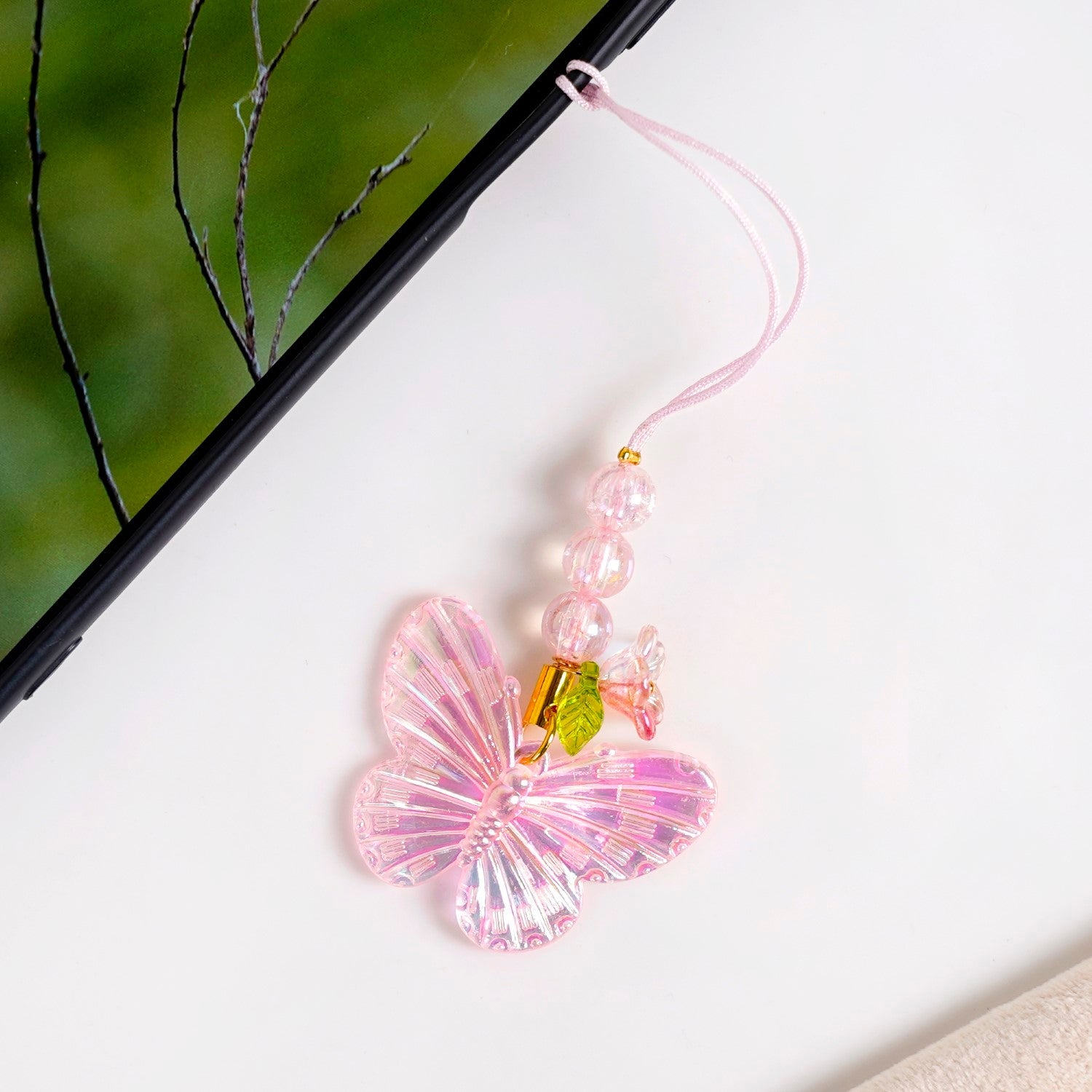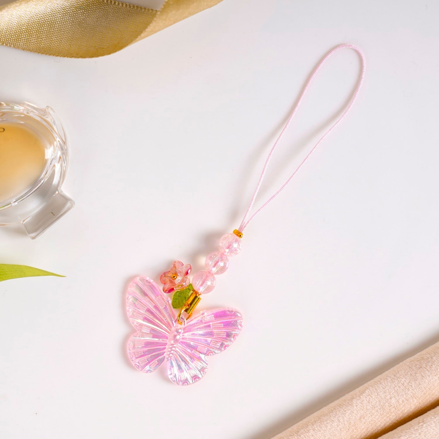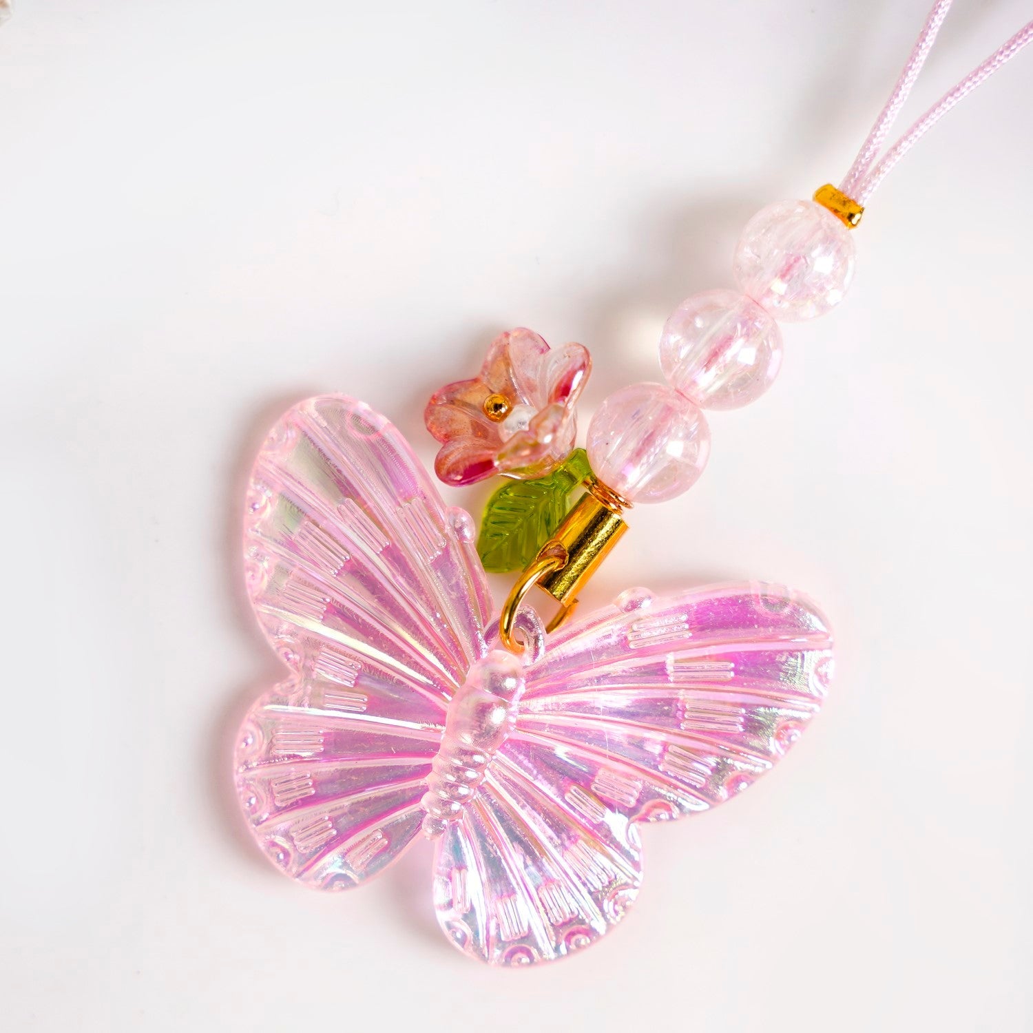 Add a flutter of charm to your phone with this whimsical butterfly phone strap! Featuring an enchanting pink butterfly charm paired with shimmering iridescent pink beads, it’s a delightful mix of style and sparkle.